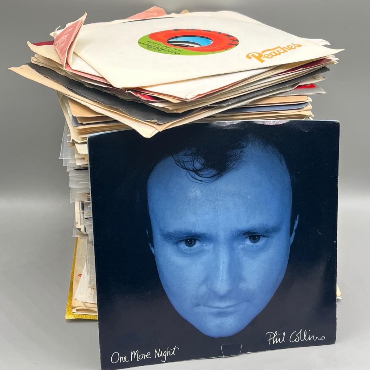 LOT 137B: Stack of 45s Vinyl (Dozens of Records) - Frank Zappa, Cyndi Lauper, Phil Collins and Much More