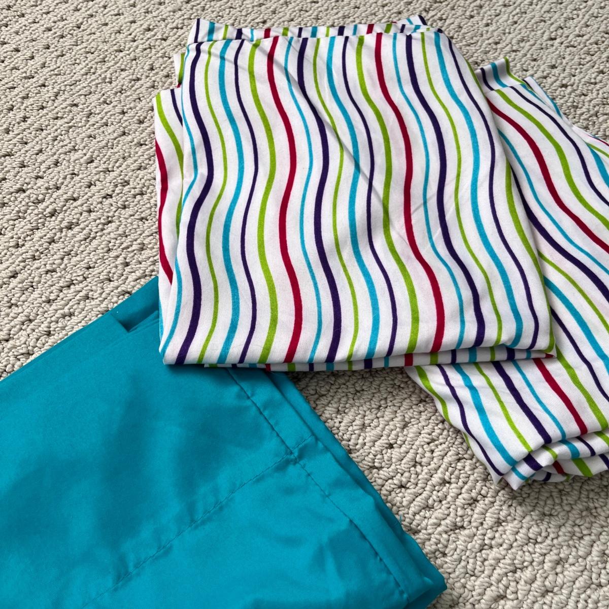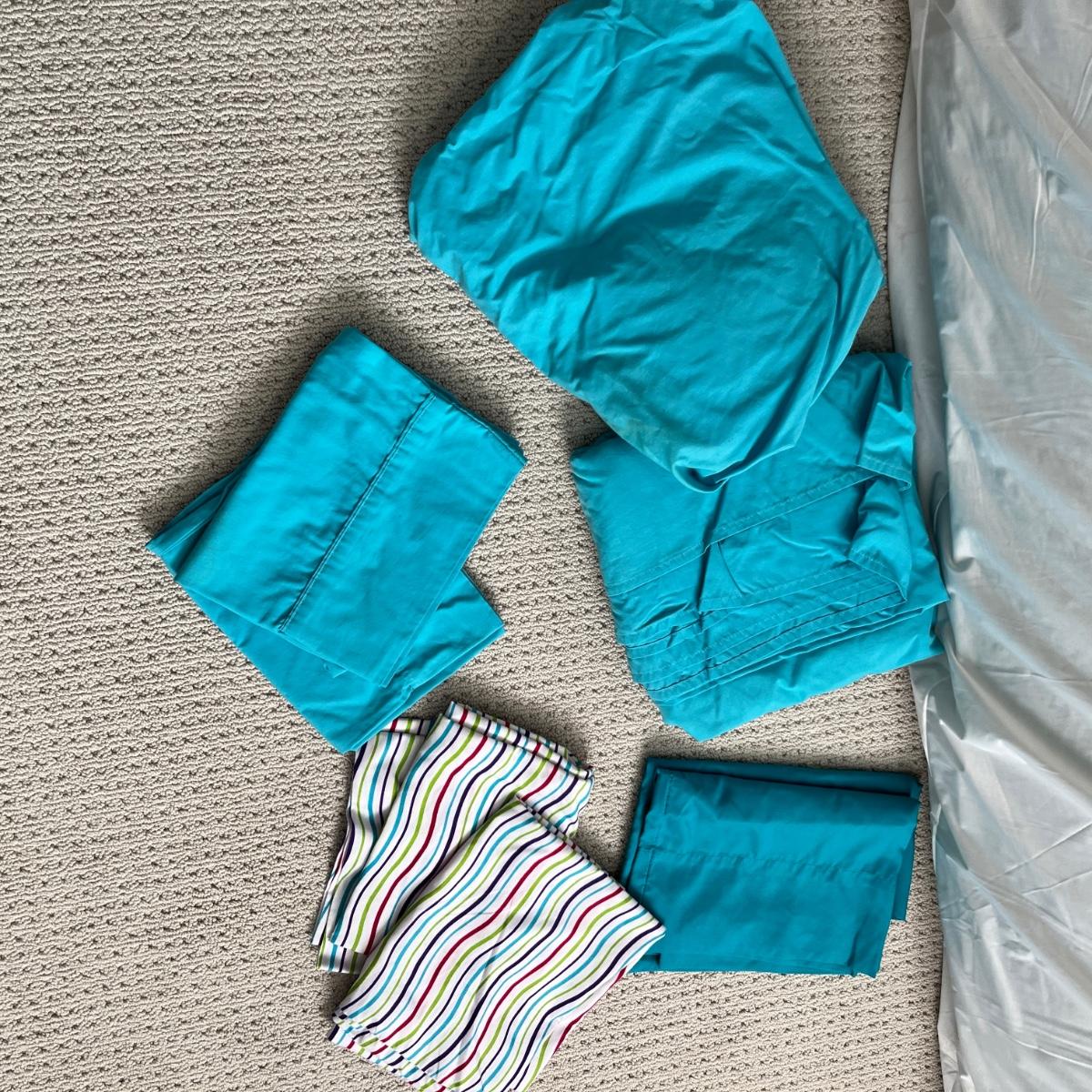 Lot 138 Turquoise sheet set and striped pillow cases (Q)