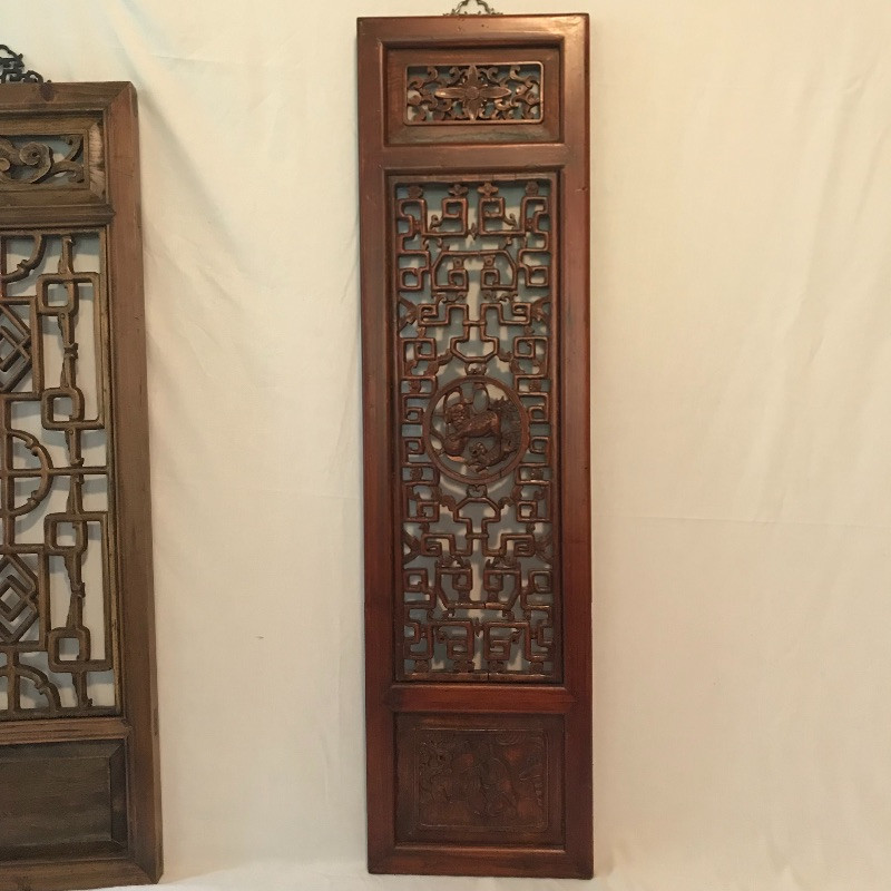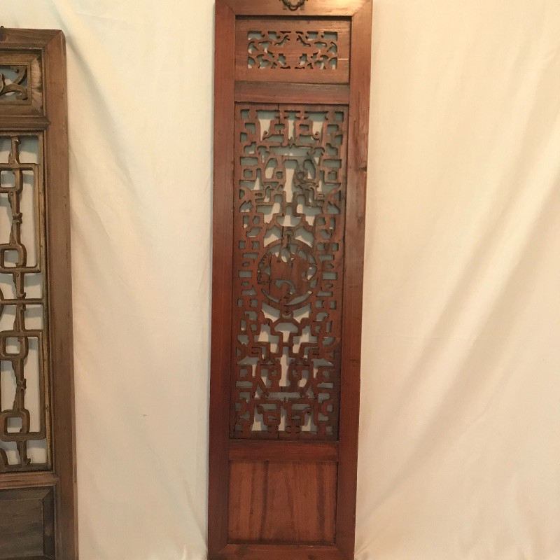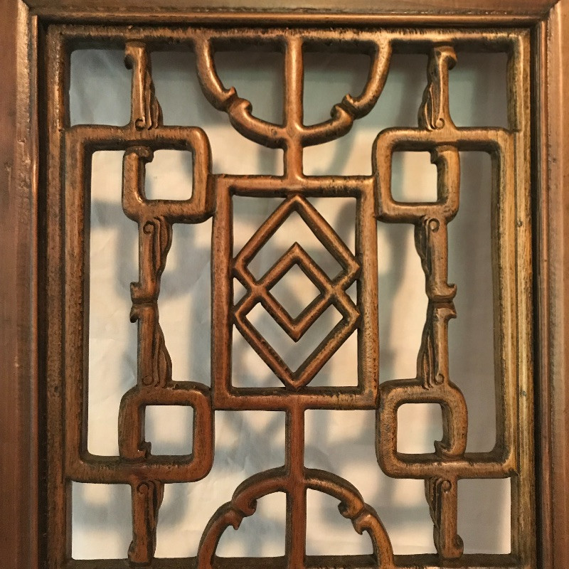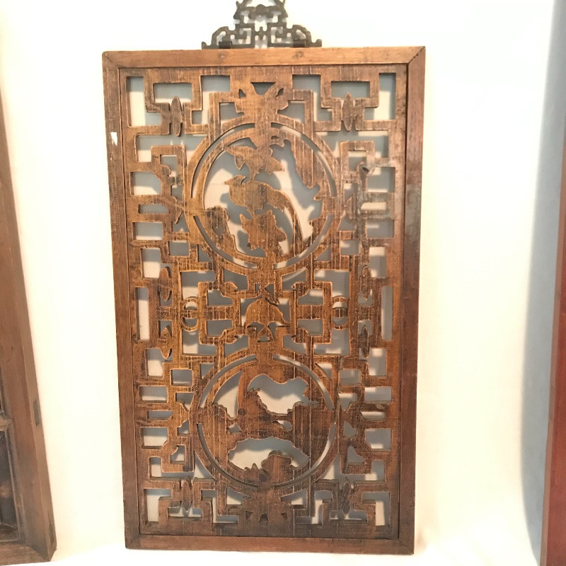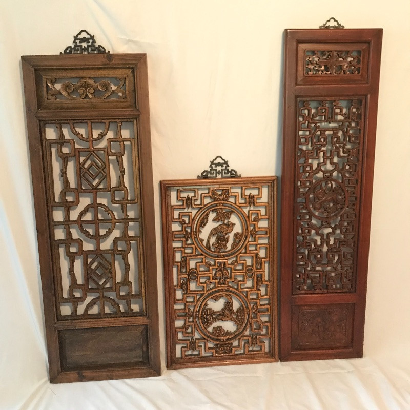 You have the perfect spot for these three beautiful wooden pieces of art! Each one has a slightly different color and theme! The smallest one has peacock like birds and measures approximately 15.5” x 26” without its metal hardware. The Asian panel has a more reddish hue and some awesome relief art at the base. It measures approximately 11.75” x 44”. The final subtly intricate panel measures 14.5” x 42”. All panels have metal hardware on the top for hanging. See photos. Local pick up only.