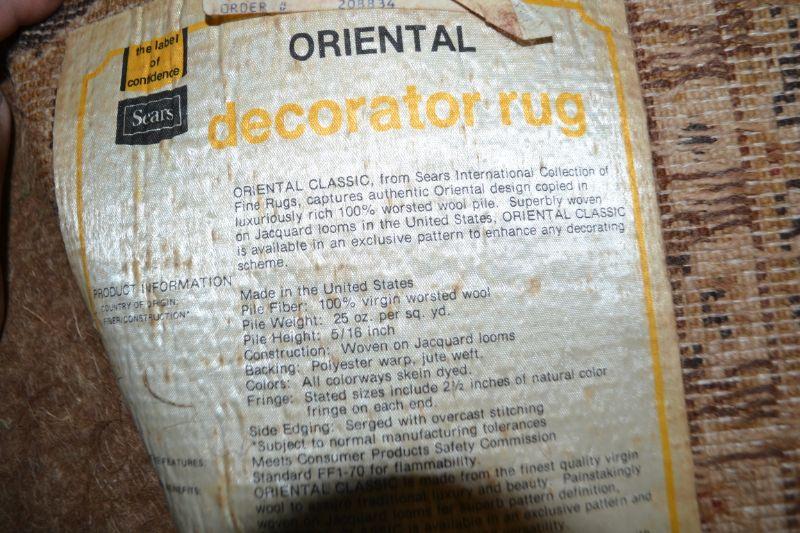 LOT 138 VINTAGE SEARS WOOL RUG