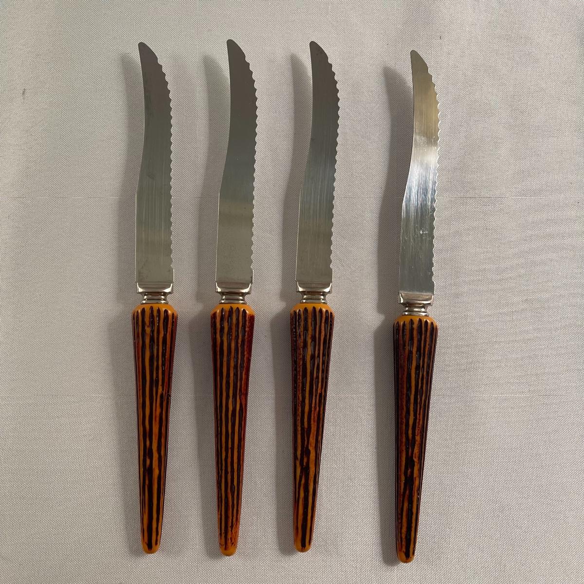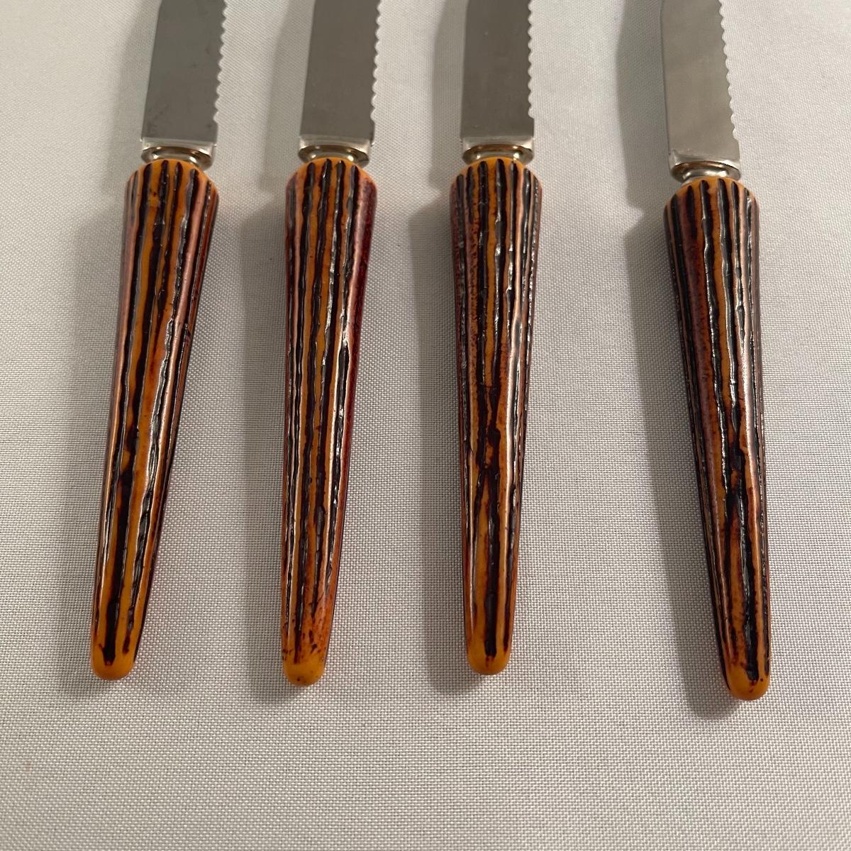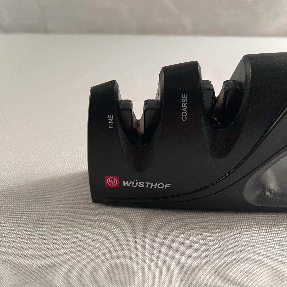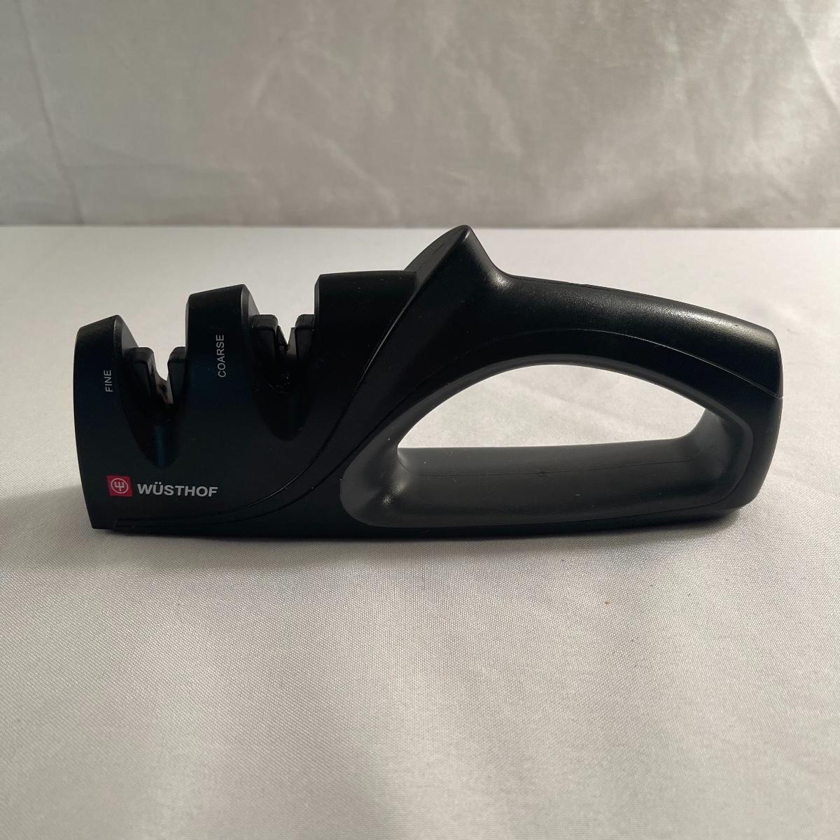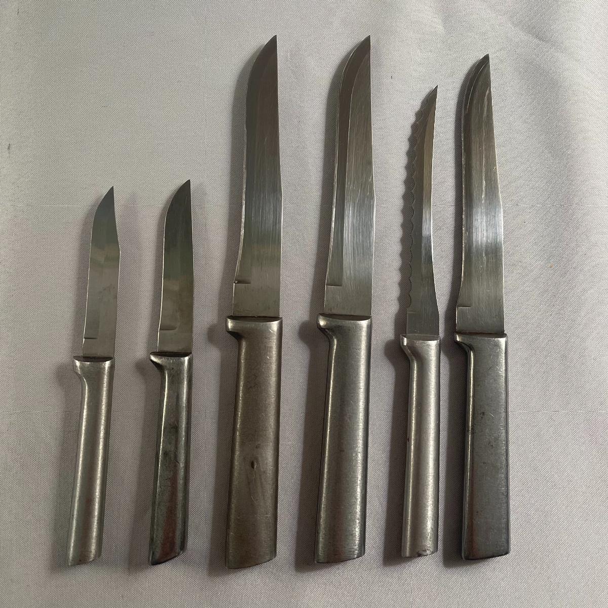 This variety of kitchen knives includes a set of Wesley Forge knives, wooden handled knives, knives with silver handles, and a few assorted single knives. If any of those get dull, no worries; knife sharpeners are also included in this lot! One of those sharpeners is a Wüsthof brand. A Chicago cutlery cutting board is a perfect addition to this lot full of knives. Chicago Cutlery cutting board measures approximately 15.5” x 11.5”