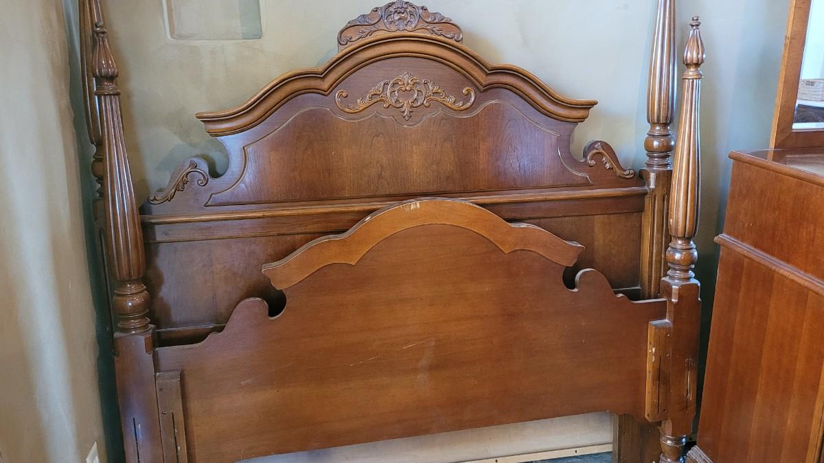 Lot 138: Stanley Furniture Queen Size Bed includes Side Wood Rails
