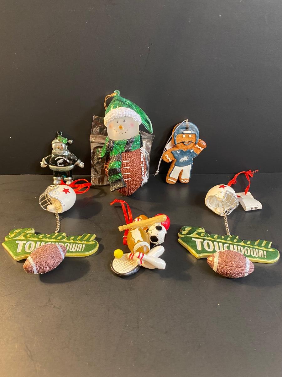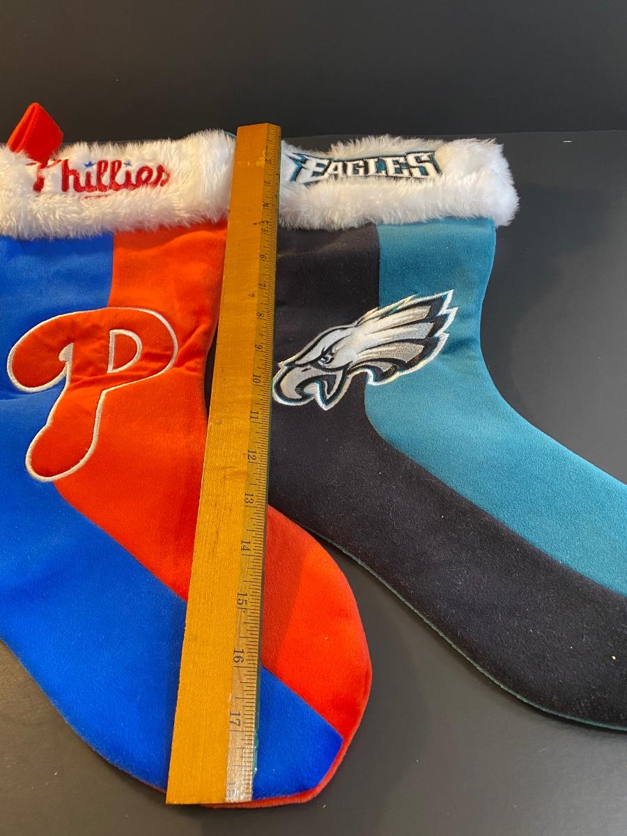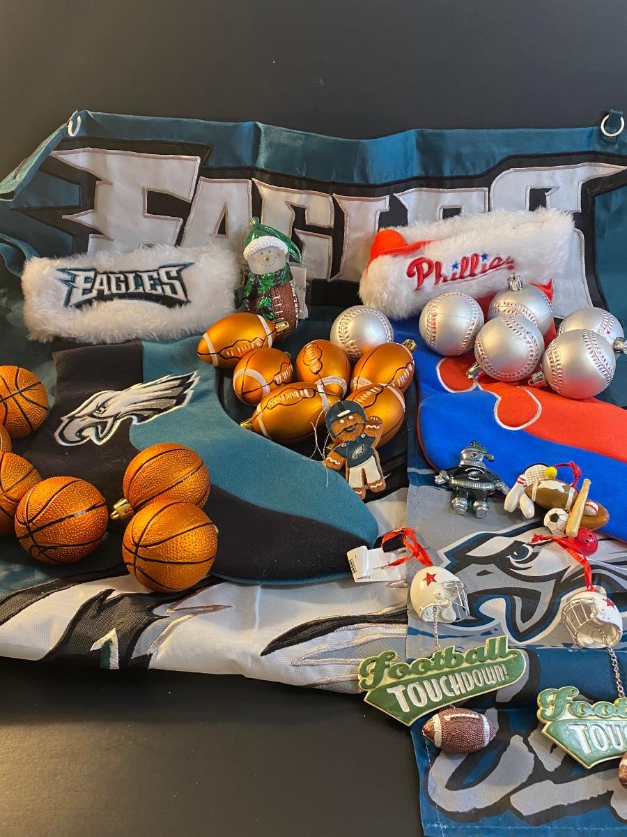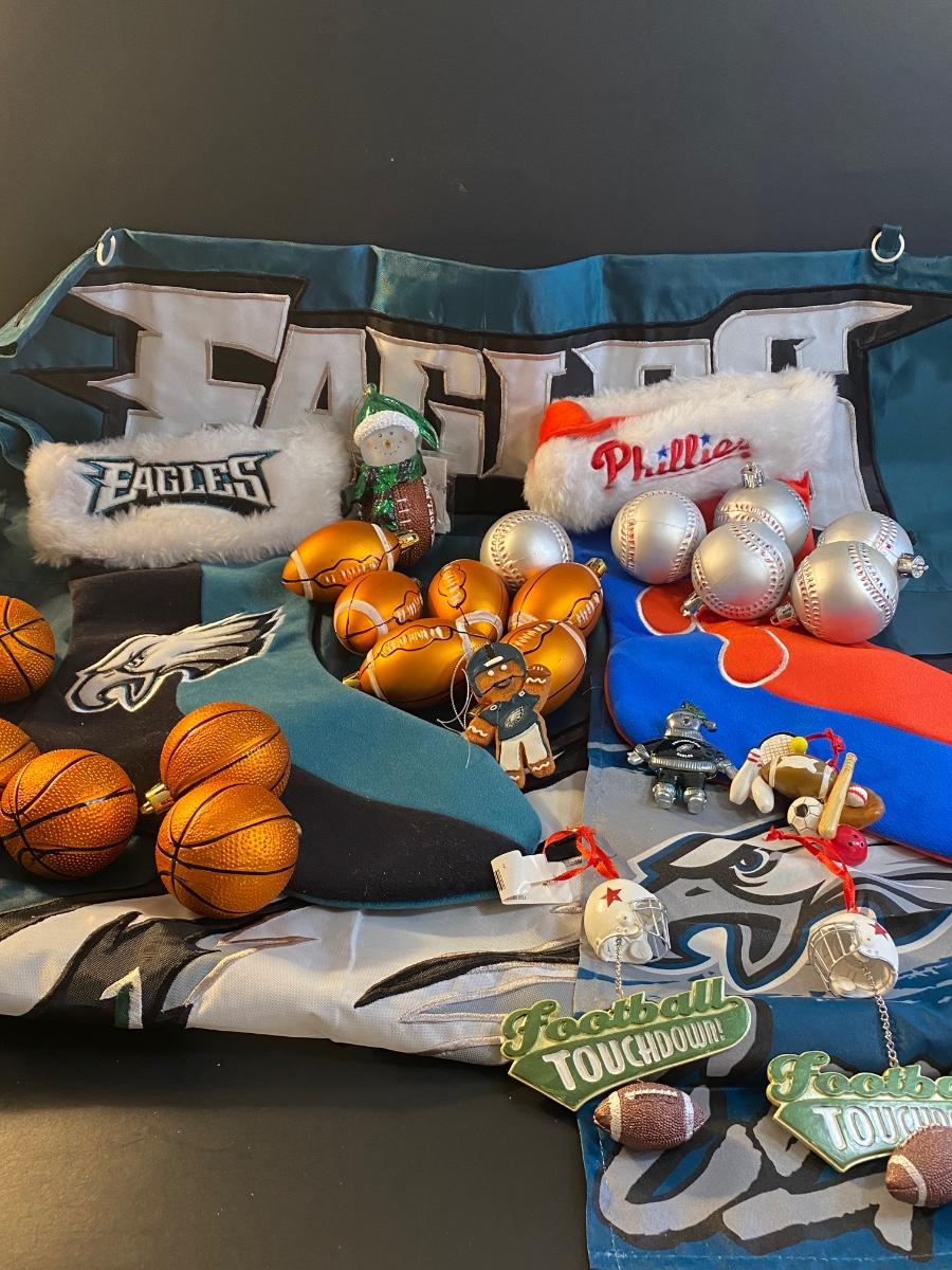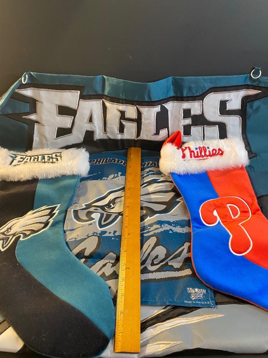 Sports lot includes large Eagles flag, small Eagles flag, Eagles and Phillies Christmas stockings, Eagles and sports themed ornaments. Please see all pictures as they are the best representation of the items. The pictures show condition, measurements if taken, and what is included in the lot. Due to the large amount that we photograph and the time frame, we are not always able to take measurements. All items unless noted, are pre-owned and have been used. If you purchased furniture, you must bring help. We do not allow one person to carry large furniture out on their own. Bring help, tools and a truck for the safety of our client’s homes, and your personal safety. Company policy. Thank you.