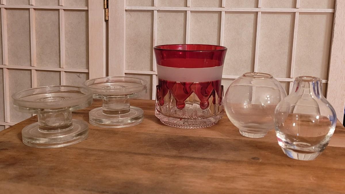 Lot 138: Mixed Glass Lot - Candleholders, Vases
