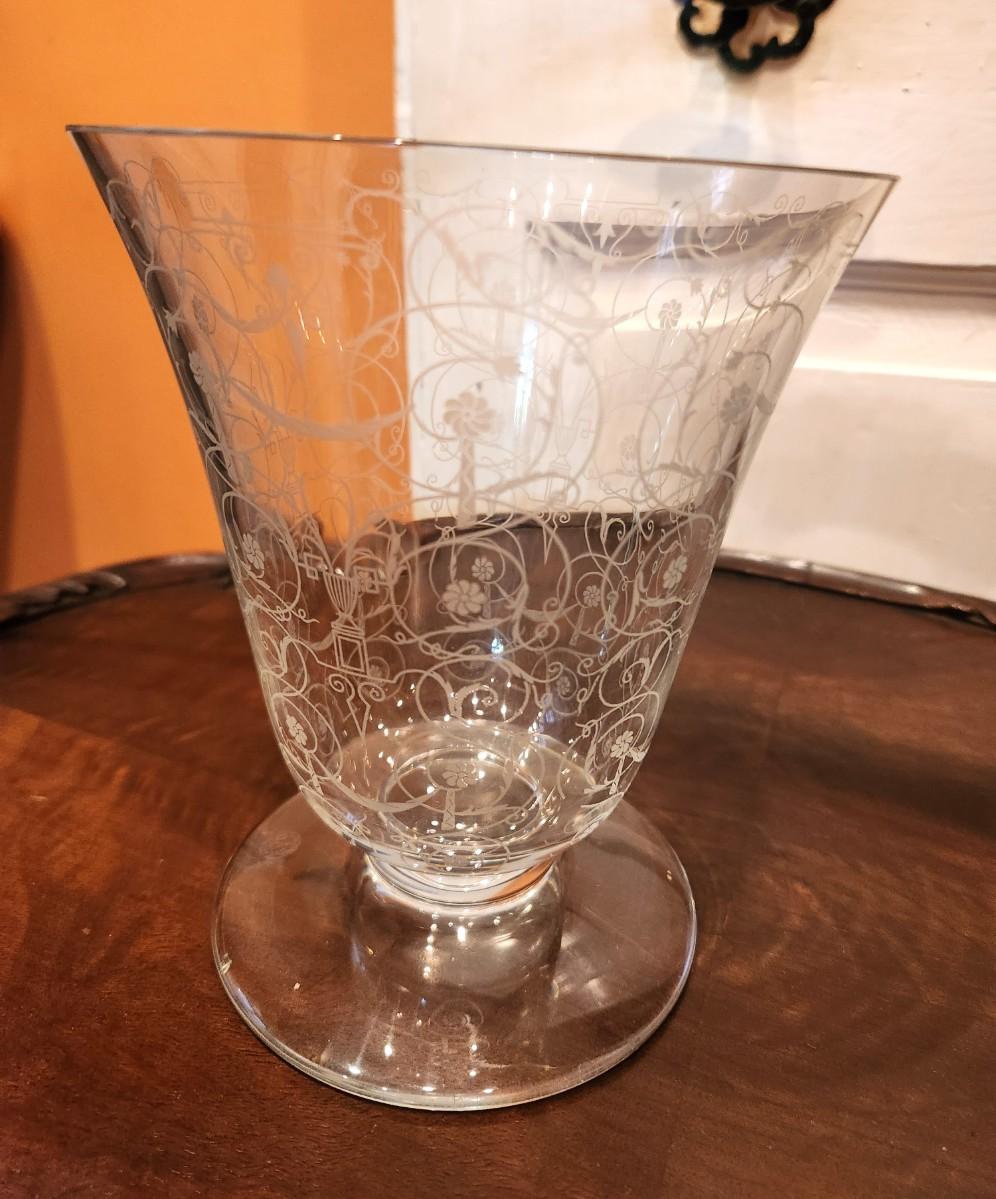 Lot #138 Baccarat Vase - lovely etched design - signed