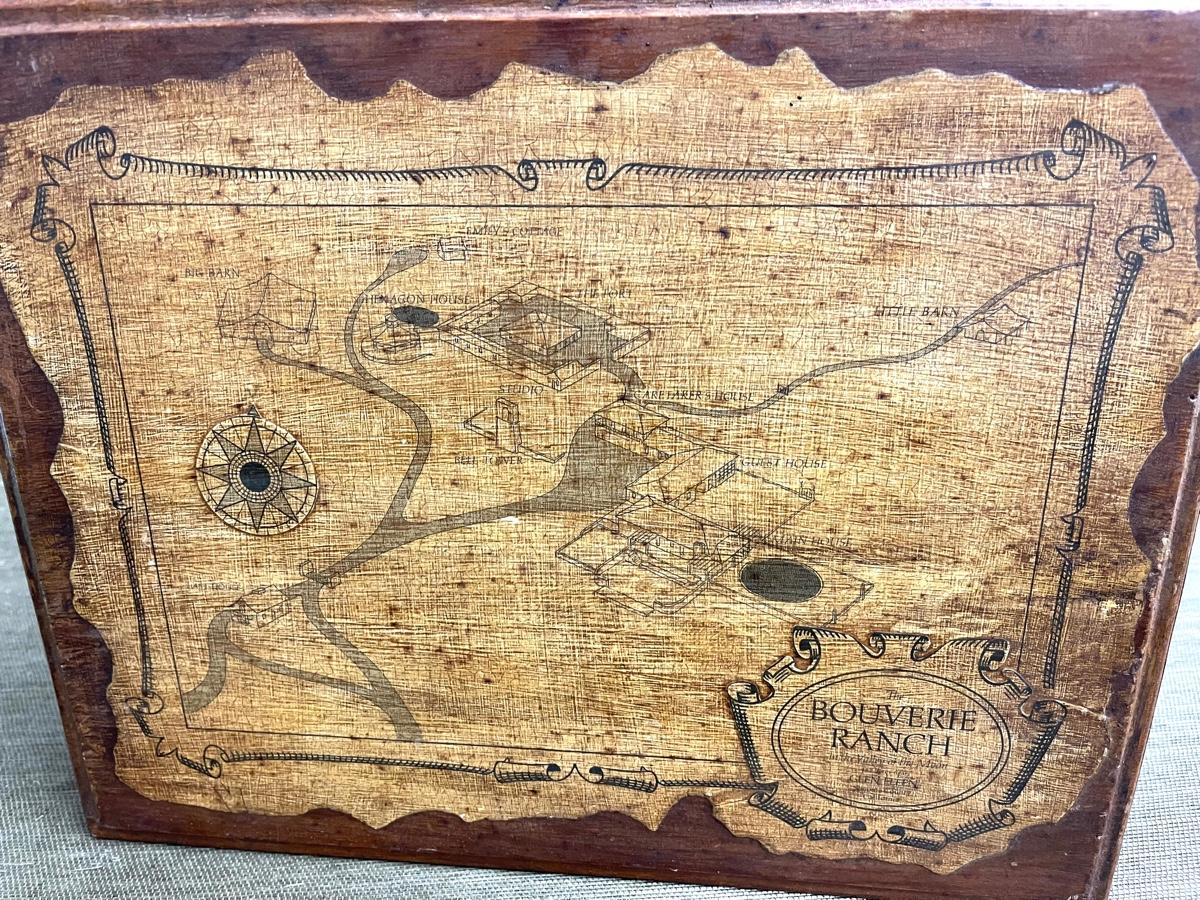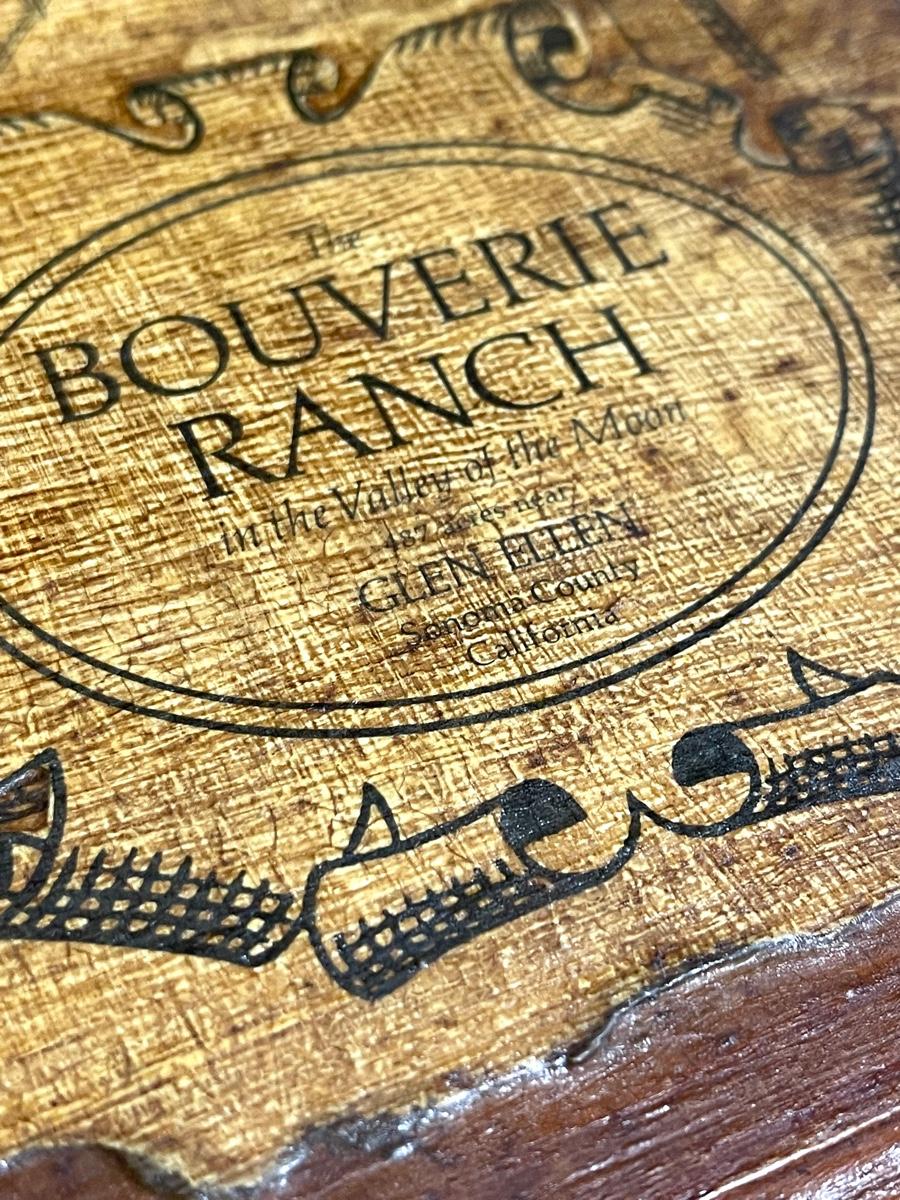 LOT 138 - Bouverie Ranch Map on Wood. This map has been decoupaged down on wood board. This item is part of the David-Pleydell-Bouverie Estate at Bouverie Ranch in Glen Ellen. This item can be viewed at our Green + Cate Showroom in Sebastopol from July 15th - July 18th between the hours of 9am-5pm. For the benefit of the Bouverie Preserve of Audubon Canyon Ranch.