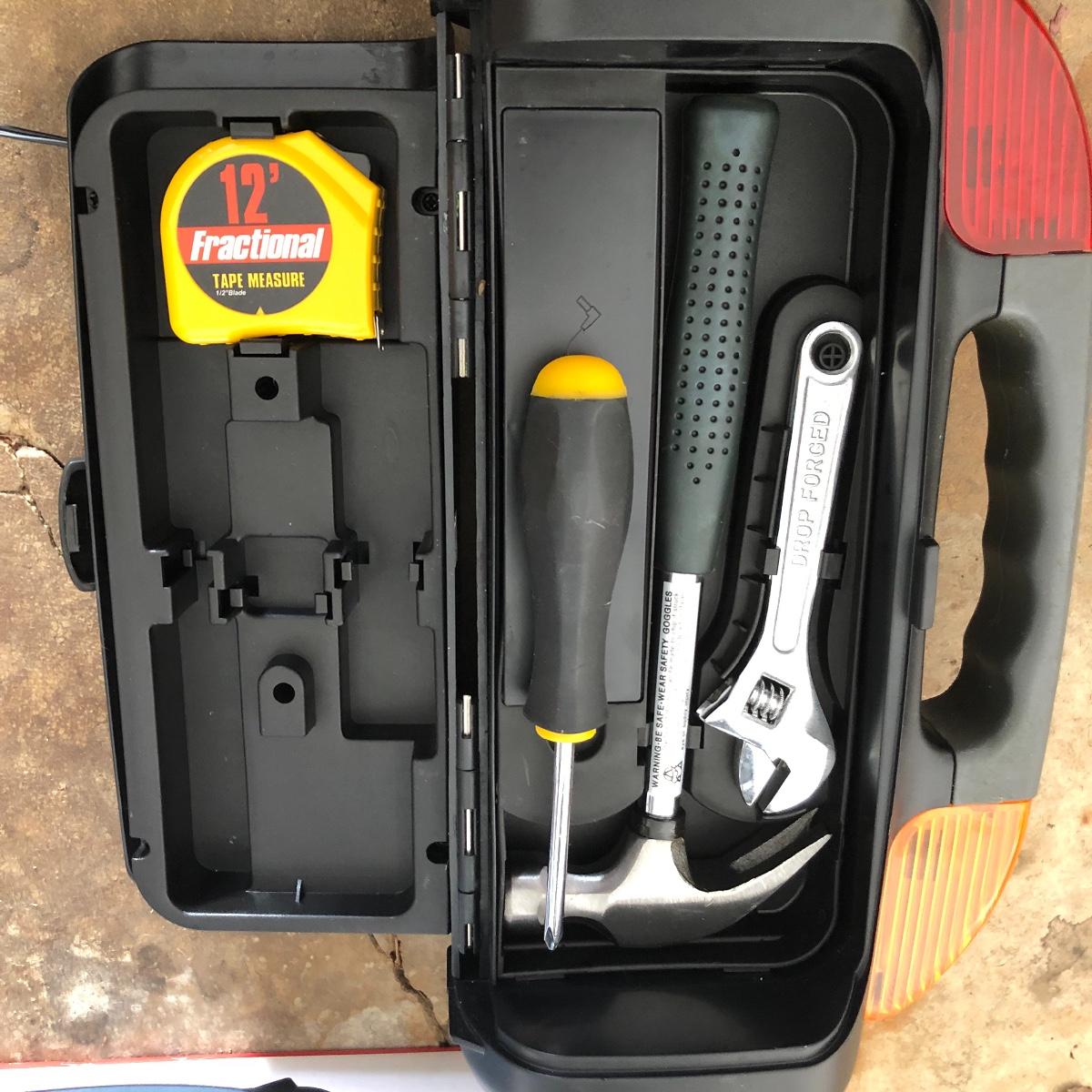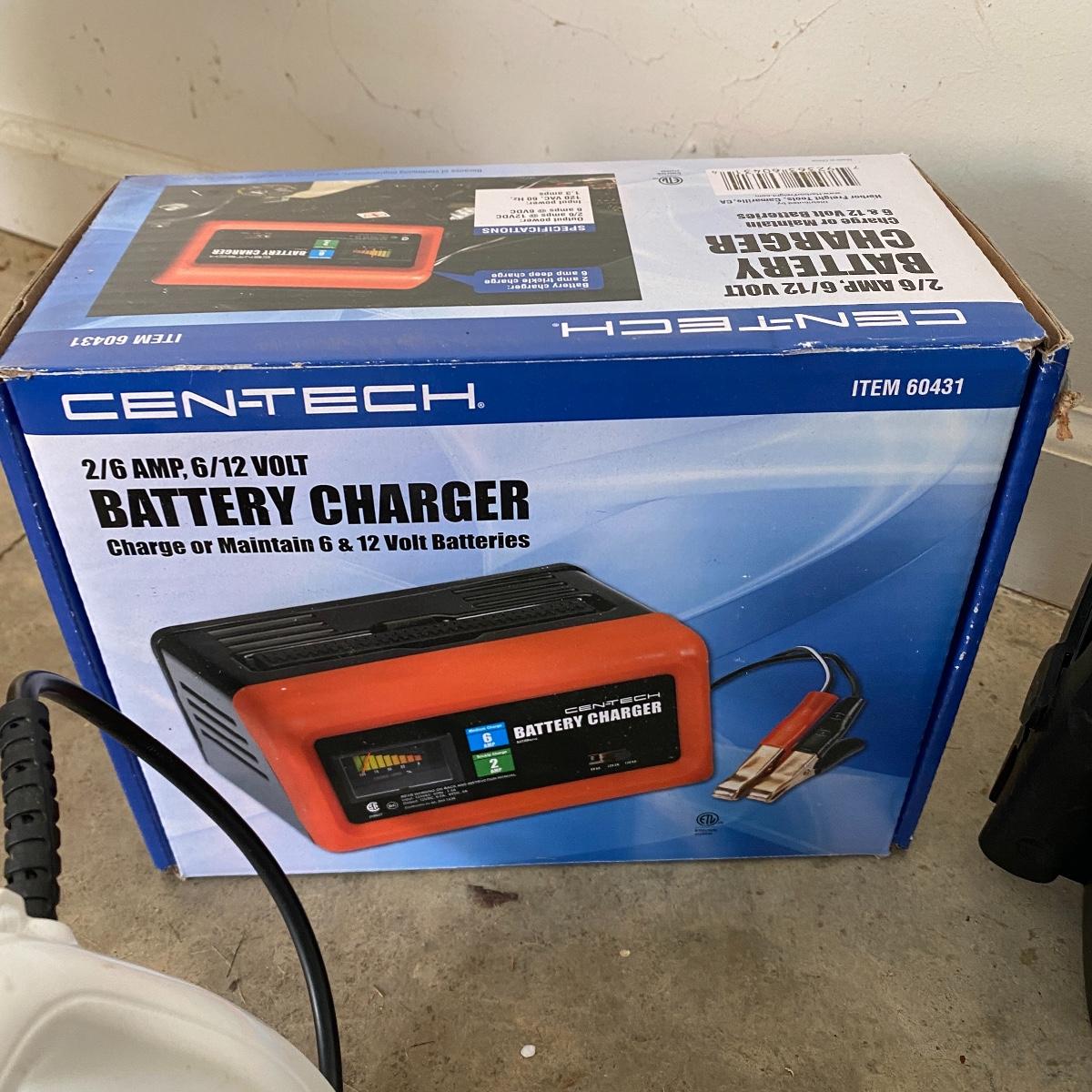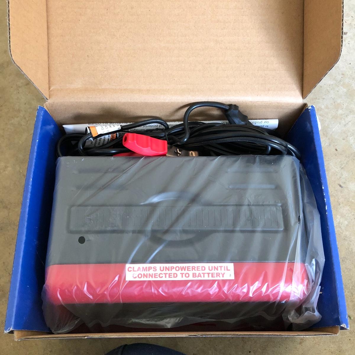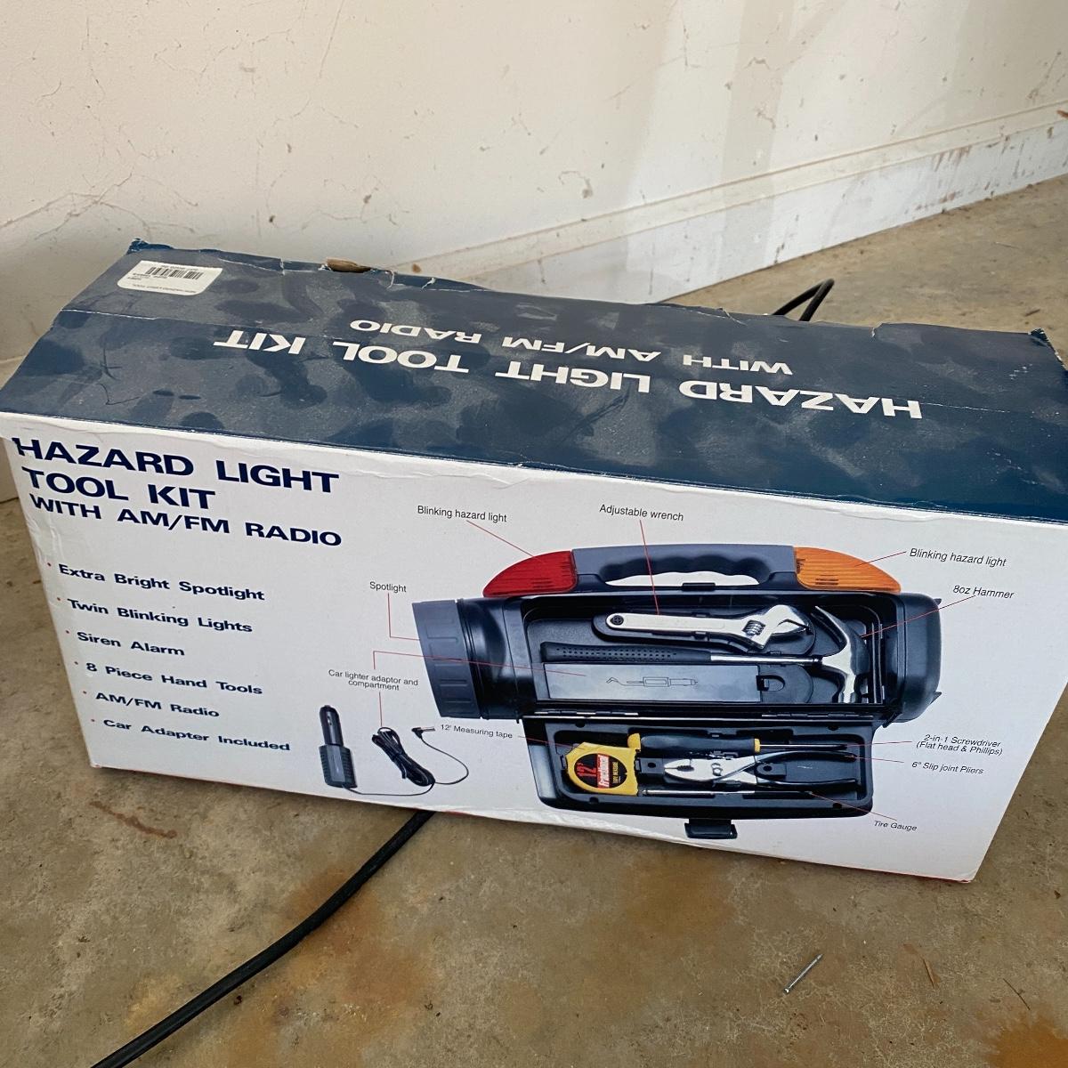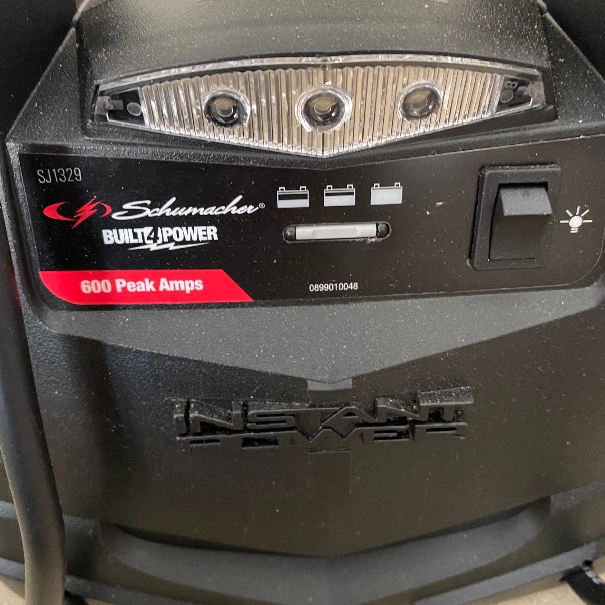 A collection of car accessories is perfect for staying safe and clean. It includes a battery charger that is new in box. a Black & Decker Dust Buster, an “Instant Power” jump power pack, a hazard light tool kit in box, parking aids and more. Vacuum worked when tested.