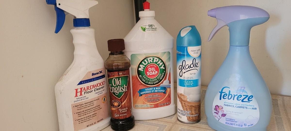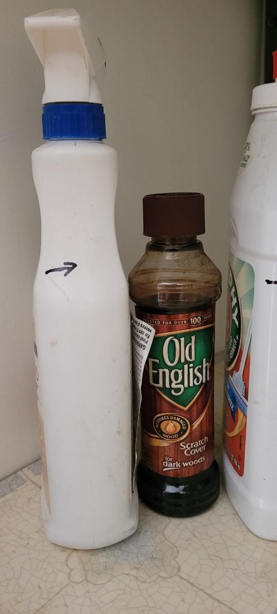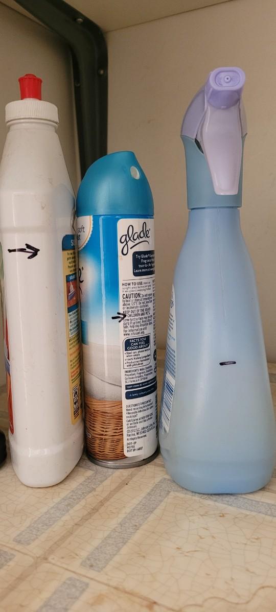 Floor Cleaners and Air Freshener. Levels of each are shown with arrow in photos.
