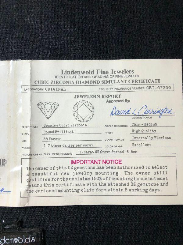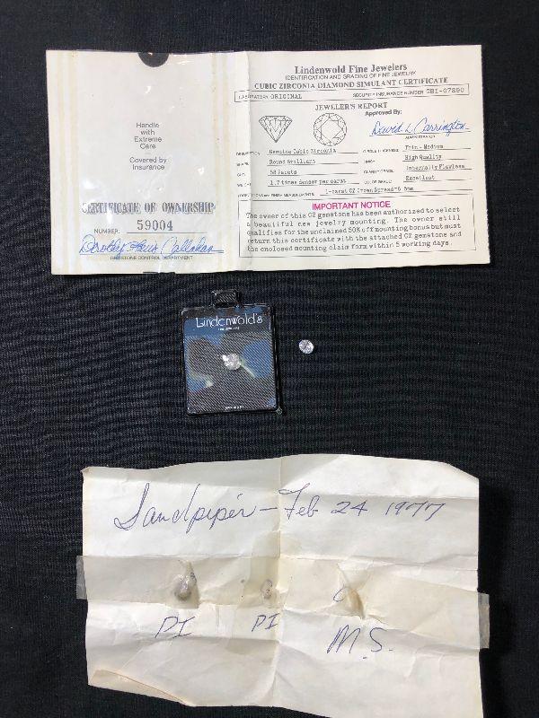 2 Cubic Zirconia stones - one with grade sheet from Lindenwold Fine Jewelers.