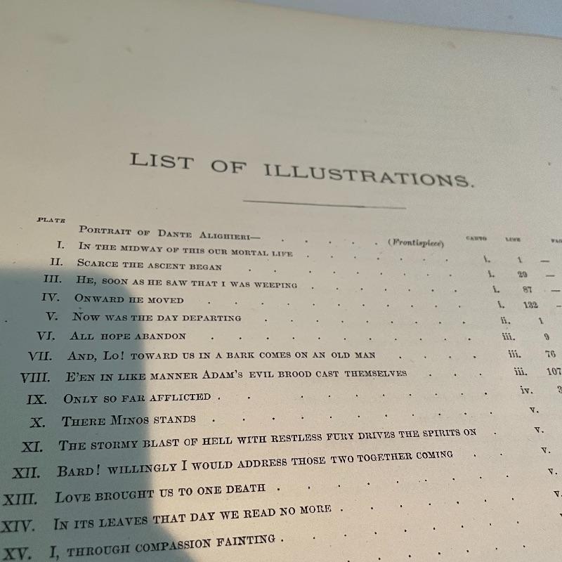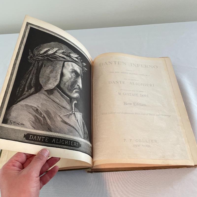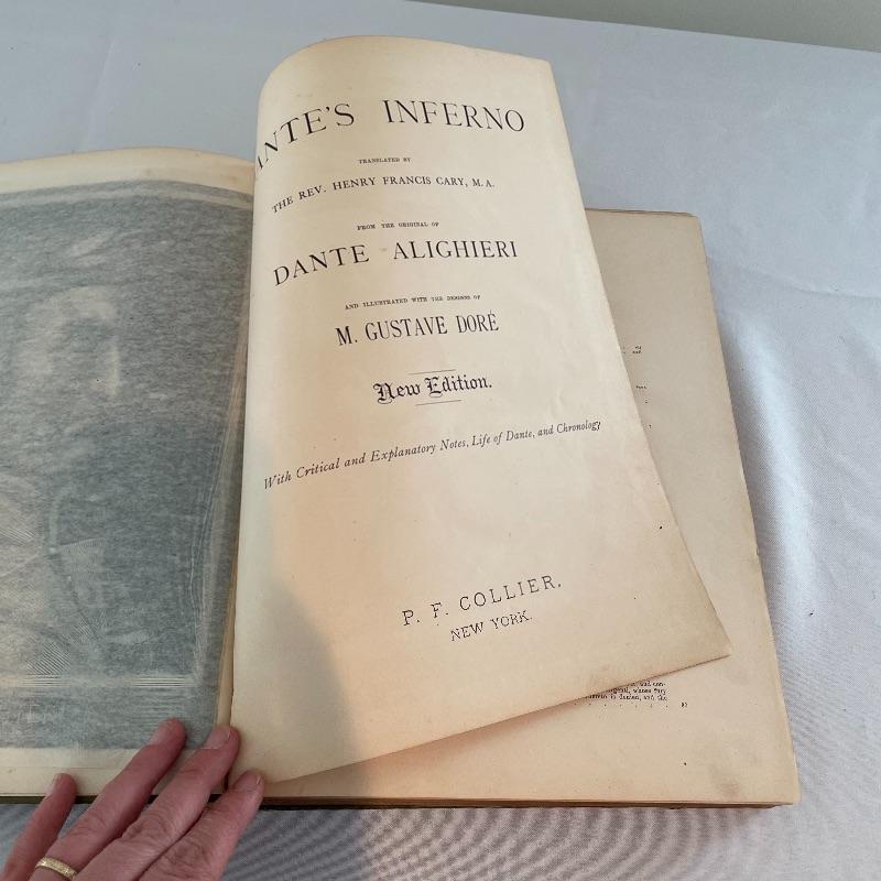 If you like the classics, this lot is especially for you. An old copy of the book Dante’s Inferno with illustrations by M Gustave Dore & published by F. Collier Publisher. We could not find the copyright date but appears to be circa mid 1880’s. If that’s the case, this book is in fabulous condition for its age. Some separation of spine and interior pages. See photos. The book is about 10” x 13”. Shipping available.