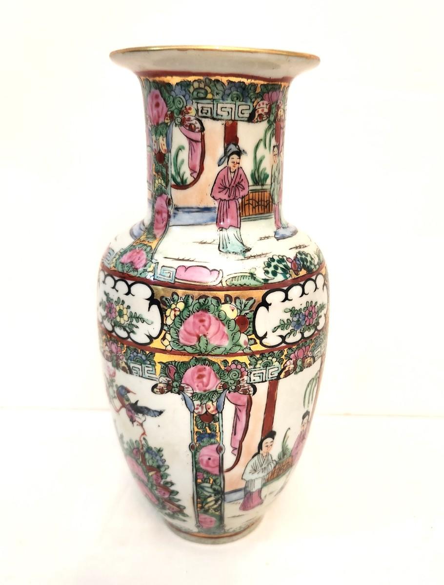 Decorative ceramic Asian Style vase, vintage sticker on bottom. 9.75" tall. Quite attractive, good condition.