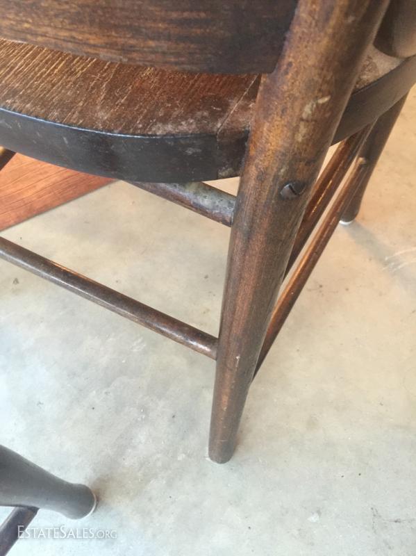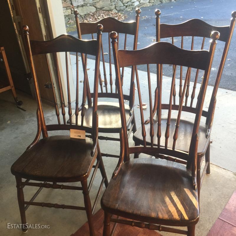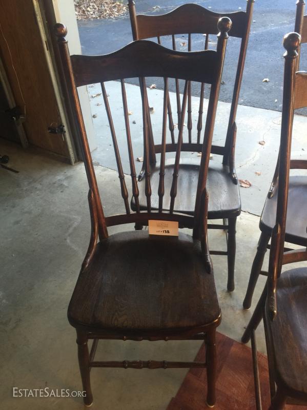Four straight back dining chairs, minor scratches, very sturdy and dark wood finish