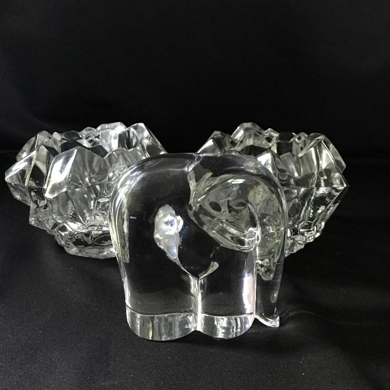 Goebel glass includes small glass elephant and a pair of small dishes.
