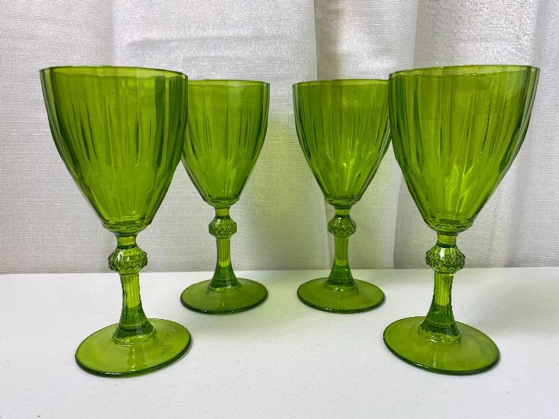 Lot# 138 Green Crystal Stemware Wine Glasses