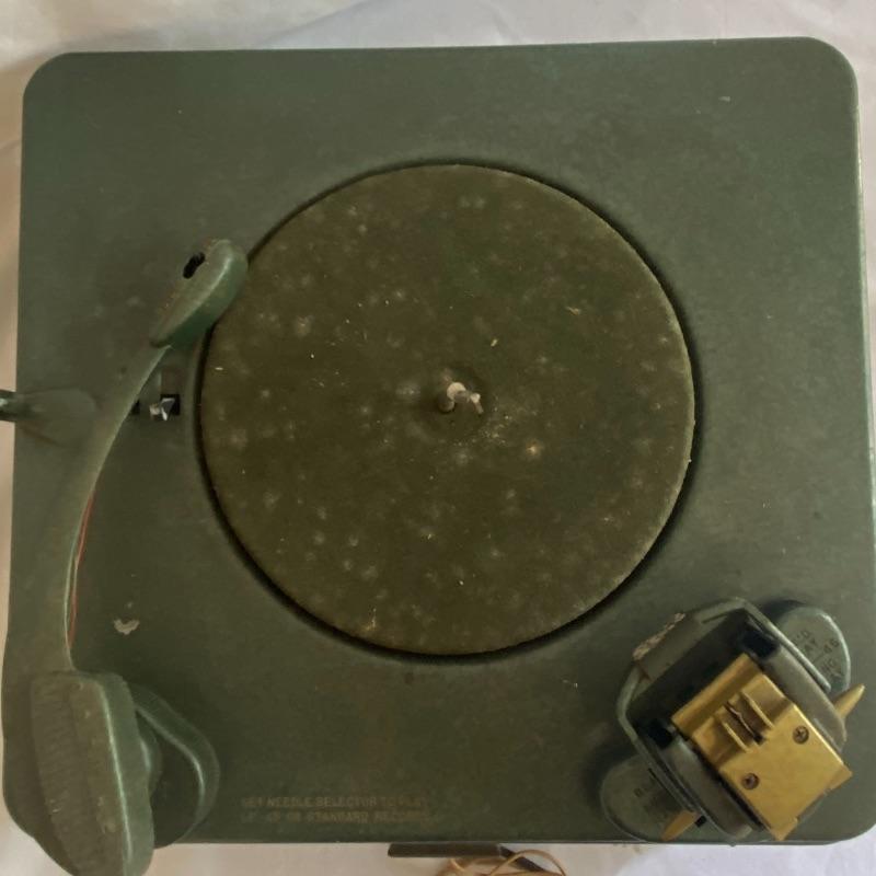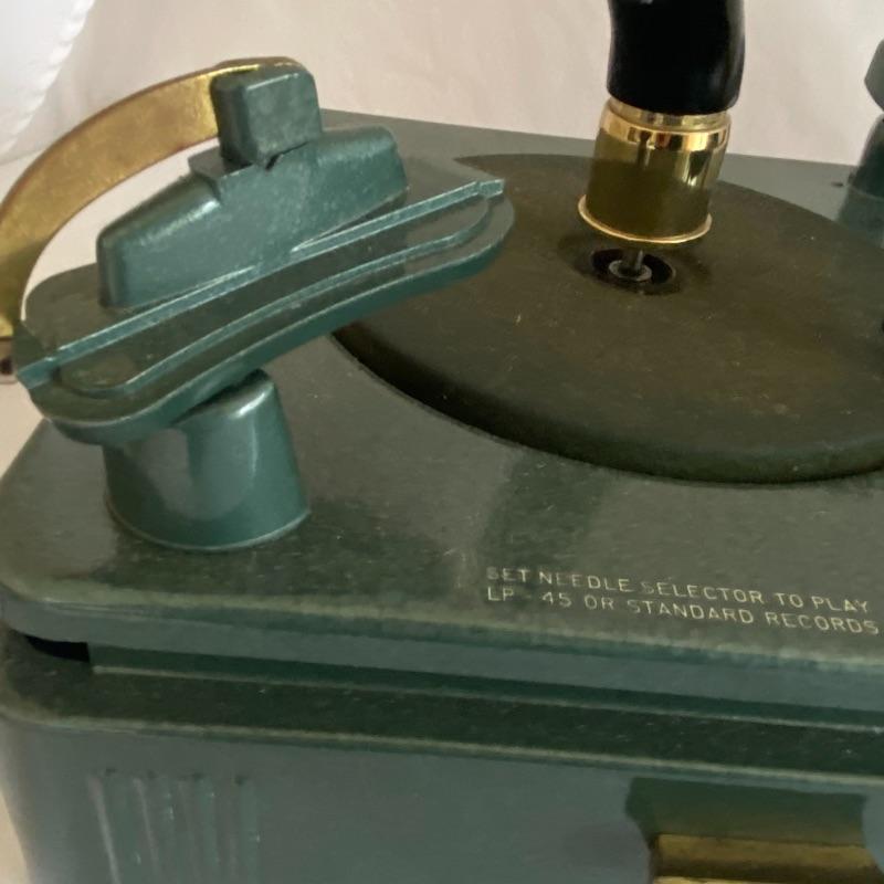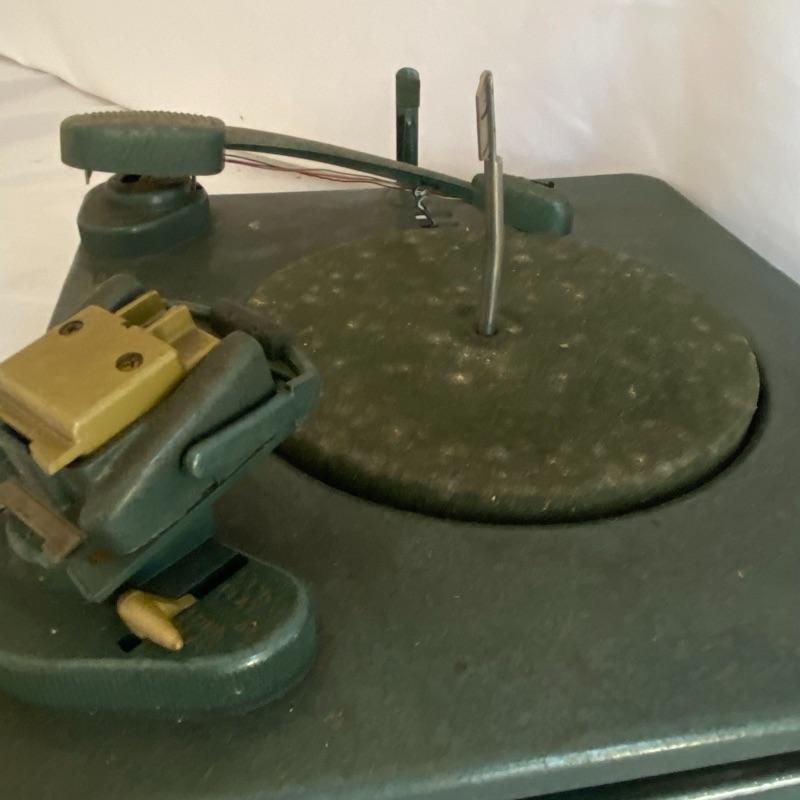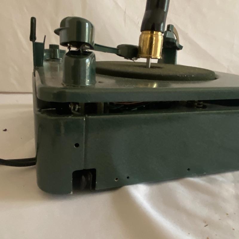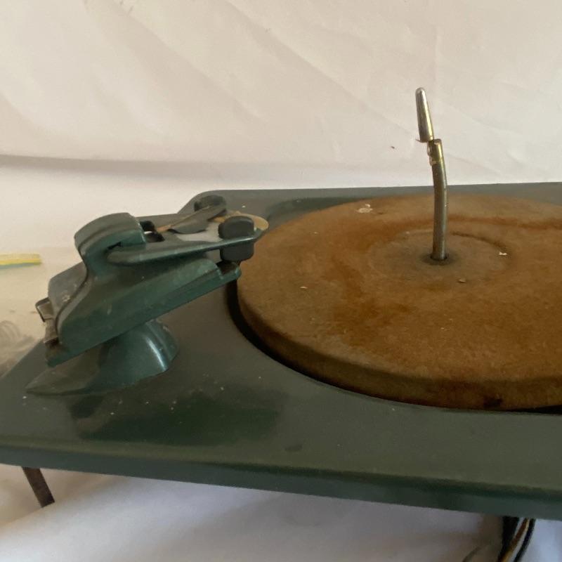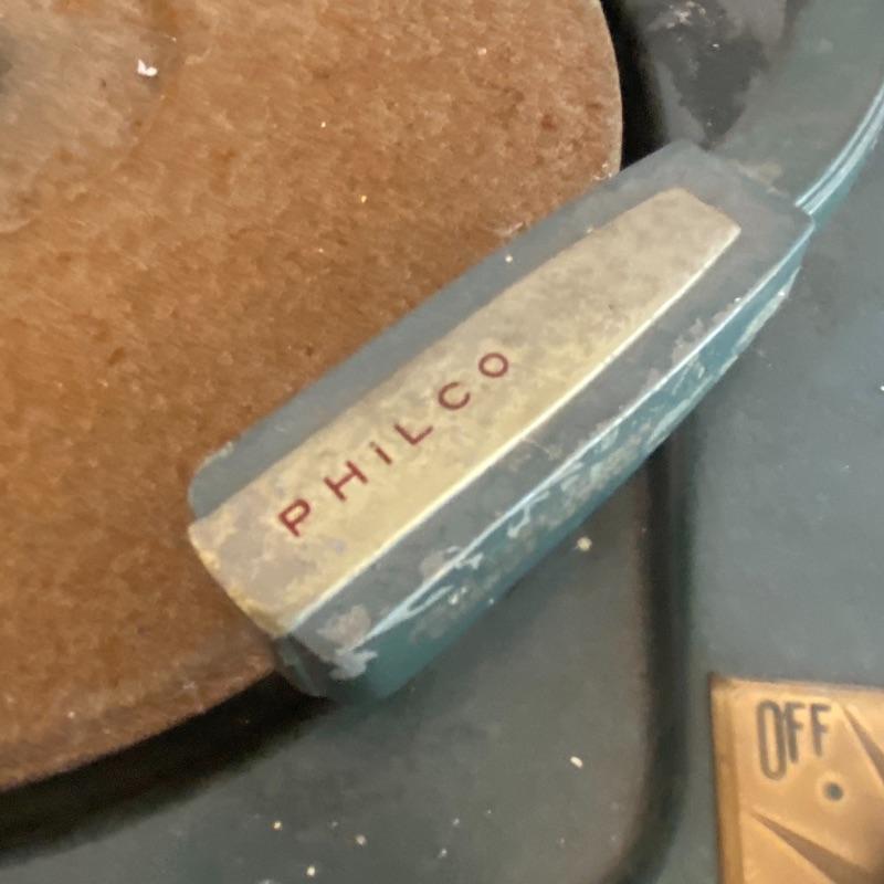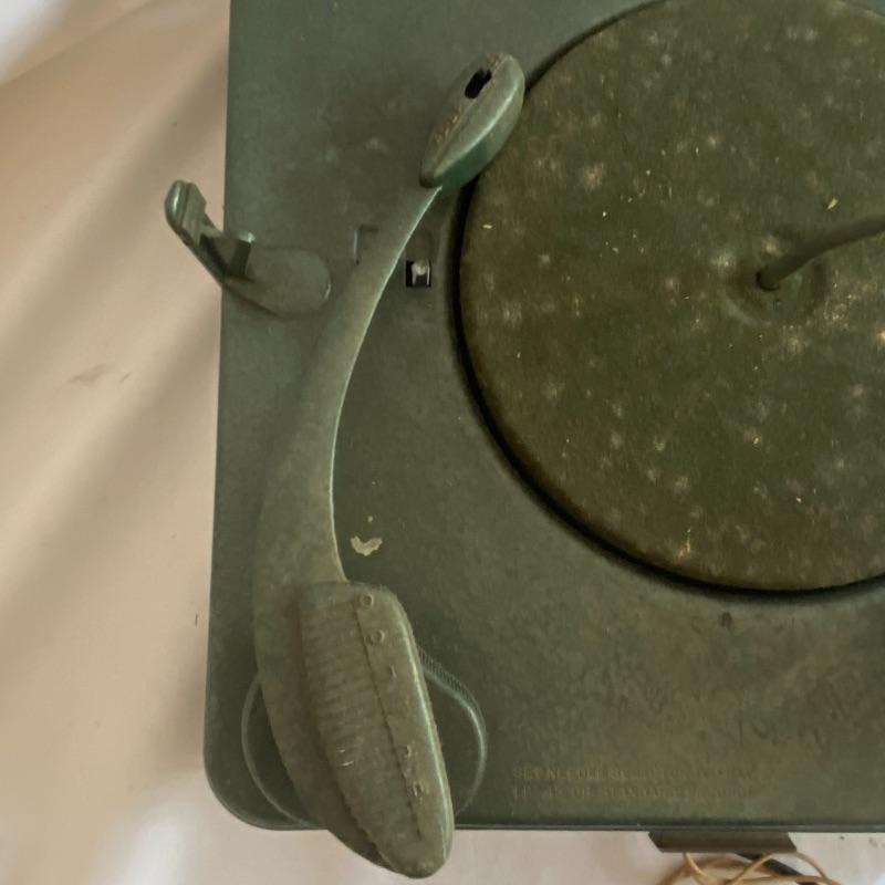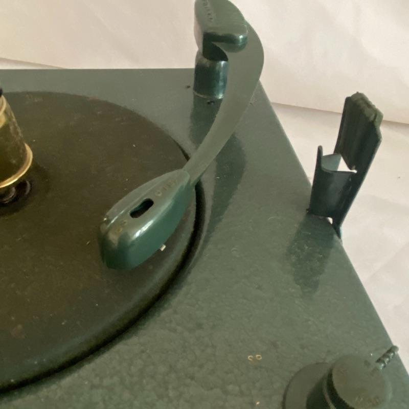 Incredible lot includes three green Philco metal turntables. Powered on when tested. Cords and parts included. See photos.