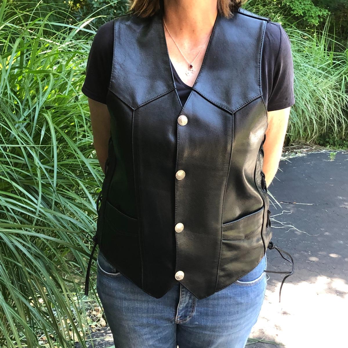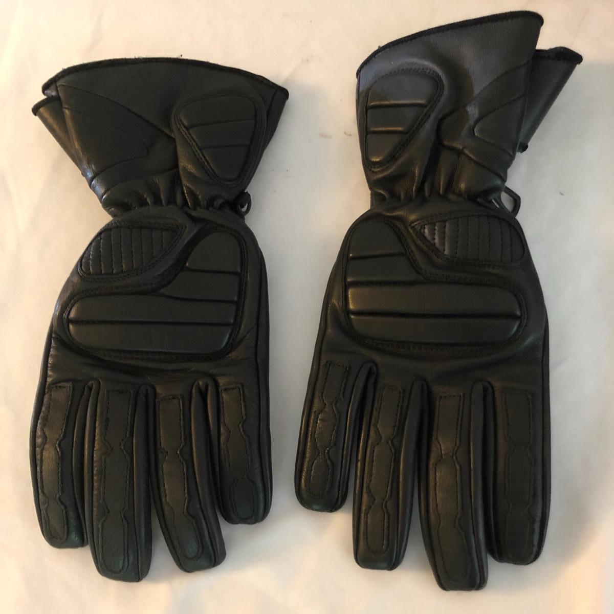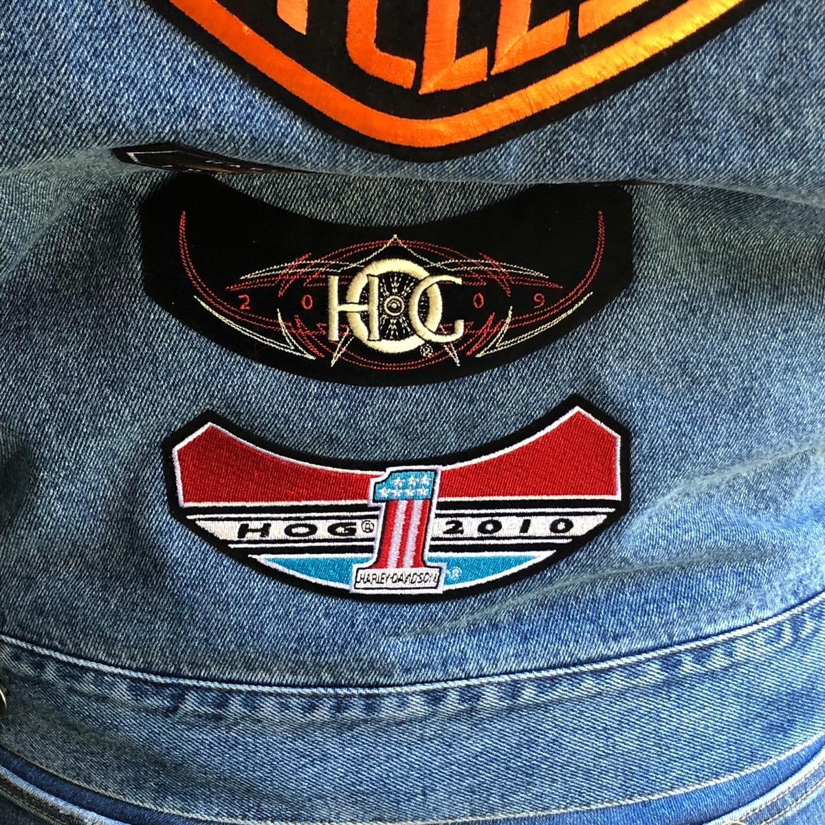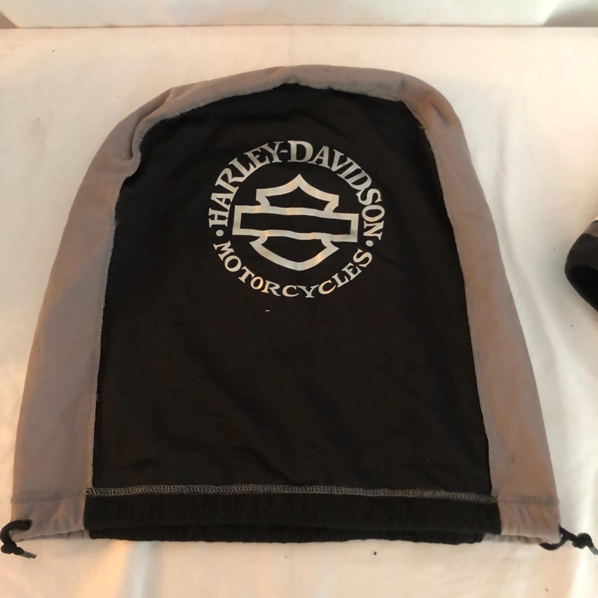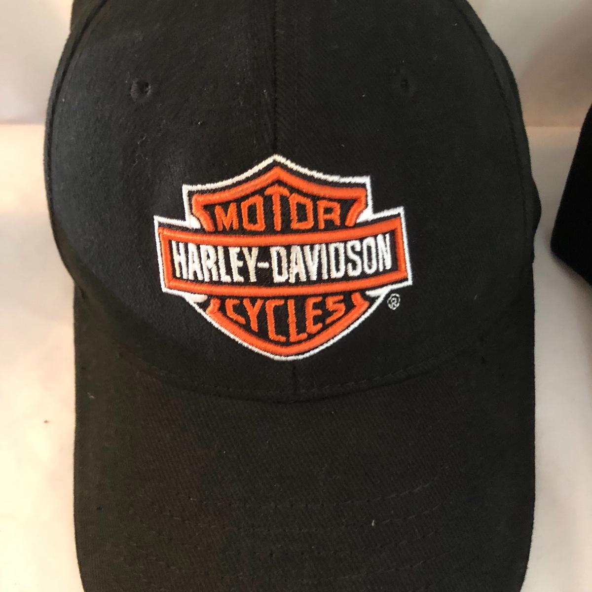 Bikers and Harley fans this amazing lot is for you! Lots of genuine leather items include a jacket, chaps and waistcoat along with a cool denim jacket plus baseball caps, helmet bag, balaclava and more. Sizes are shown in images, note that although the chaps say small, they fit on the small to medium size and they are adjustable to the waist, leg inseam measure 31” (42” from waistband to floor). The watch has a dead battery and is also missing the back. Caps are one size fits all, the sheepskin lined skull hat has no label for make, material or size. Leather jacket has a small area that is worn on the sleeve (last image).