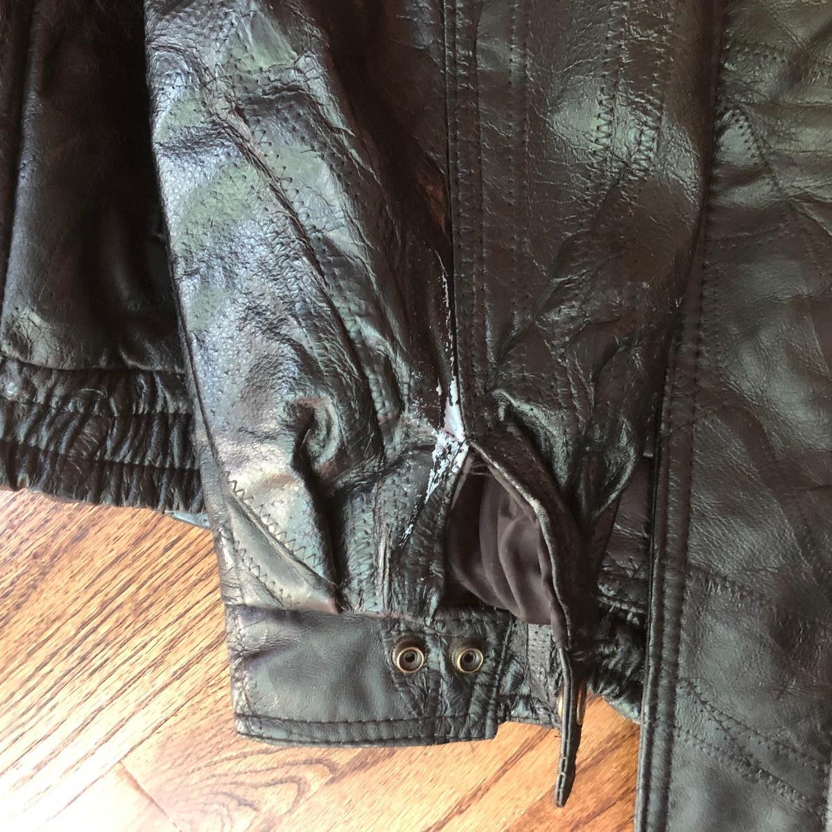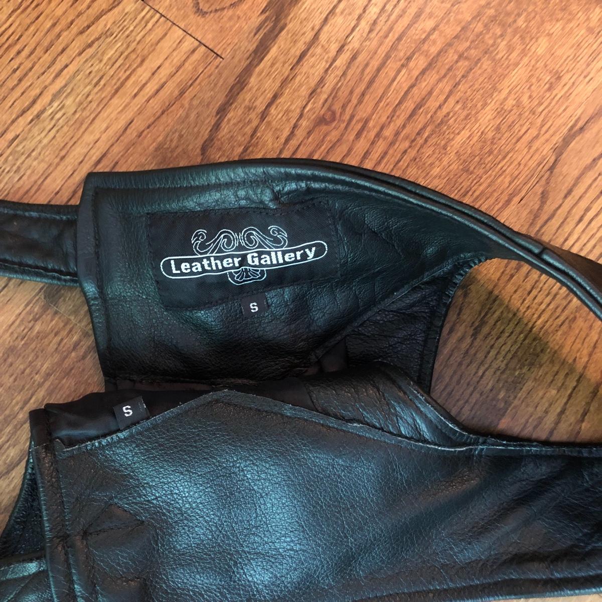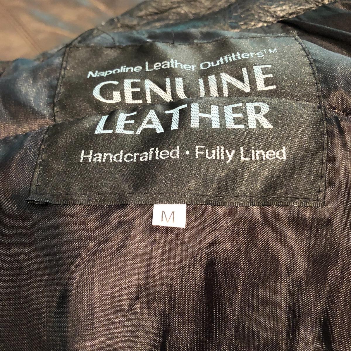 Leather jacket measures chest 24” x shoulders 21” x length 27”.