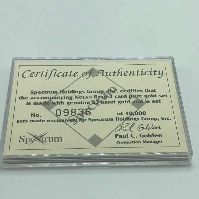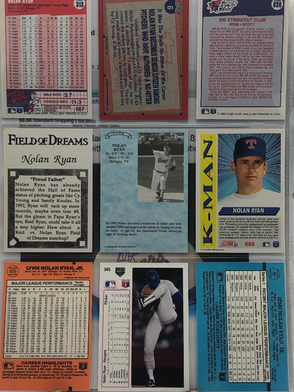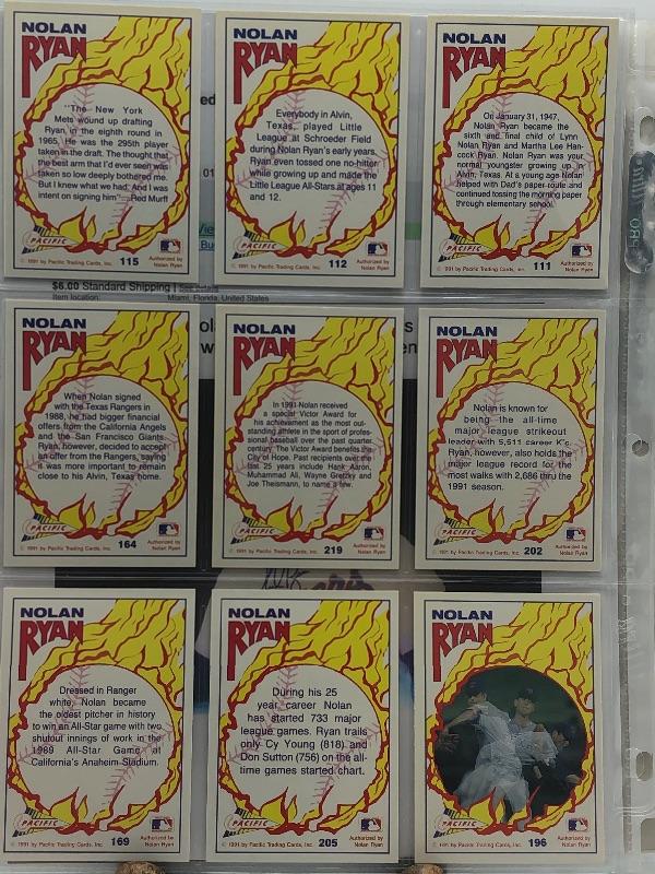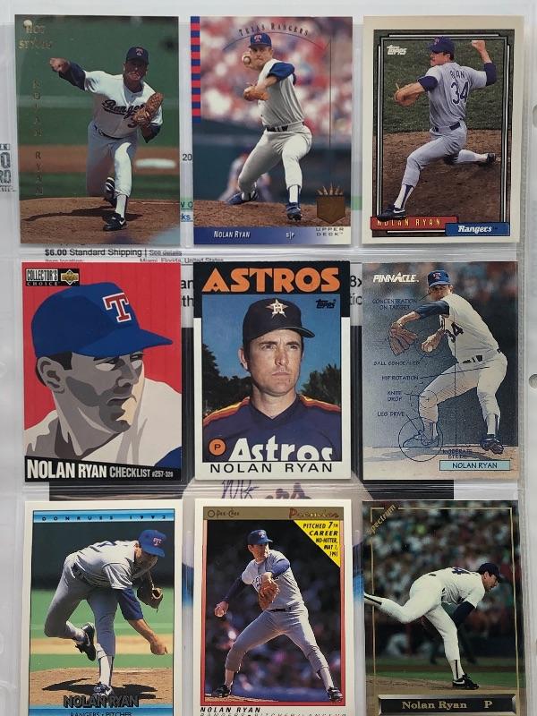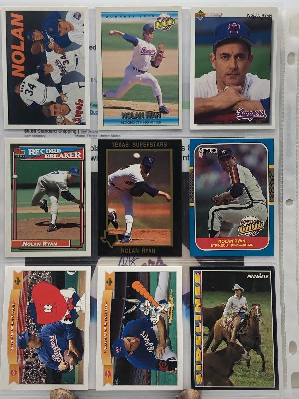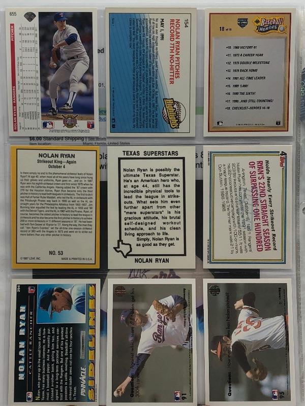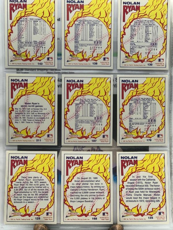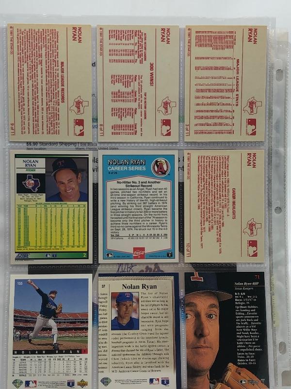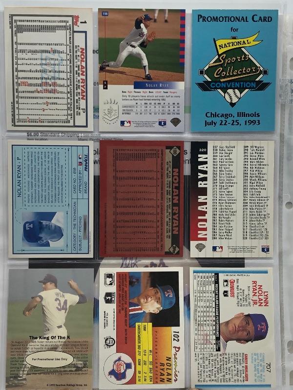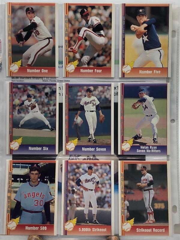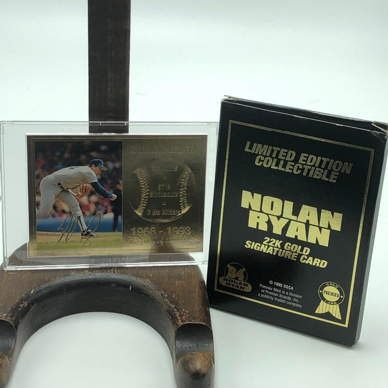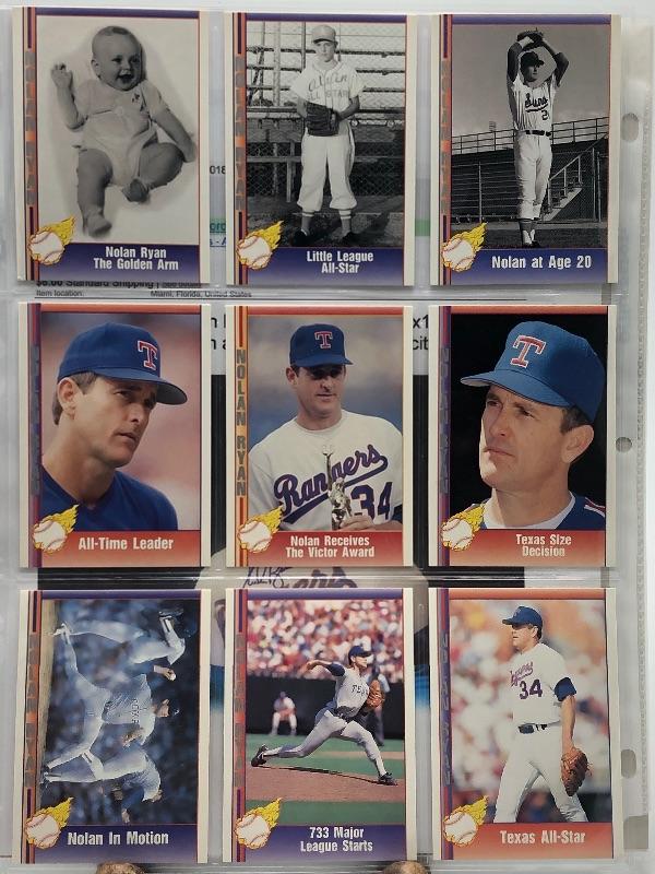No Collection of baseball memorabilia is complete without without “The Golden Arm” himself, the legendary Nolan Ryan. Highlights of this lot includes two 8x10 signed photographs with COAs, a limited edition 22K gold signature card, a box of Donruss Nolan Ryan career series cards still sealed in plastic (box has been opened but cards have not). A set of Spectrum pure gold cards with COA, a Texas express trading card series with 110 full color cards, and a set of 220 pacific trading cards including the golden arm as a baby.