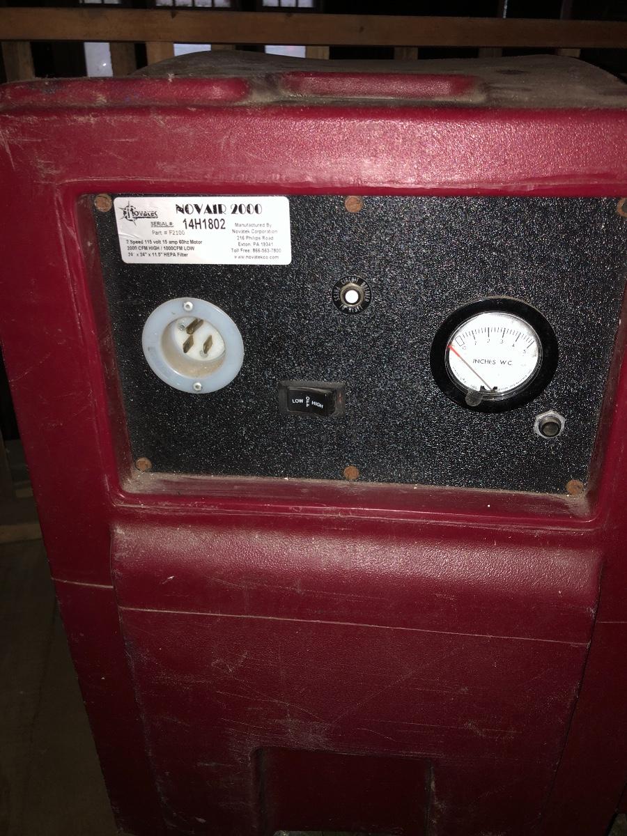 This Novatek Novair 2000 is a negative air machine on wheels. From the internet “”“ Novair 2000 Portable Air Filtration for use in abatement, hospitals, air scrubbing, or anywhere dust is a concern.“ We have not been able to test it’s function. Machine measures 28.5” x 41.5” x 32”. Bring help item is substantial and up a flight of stairs.