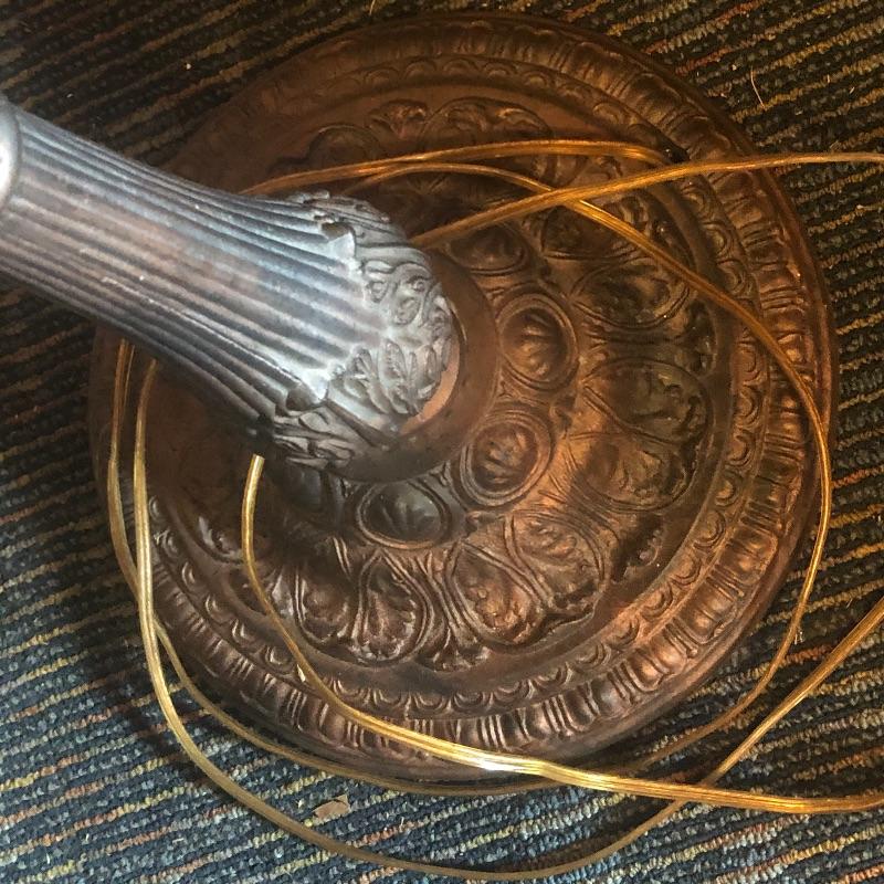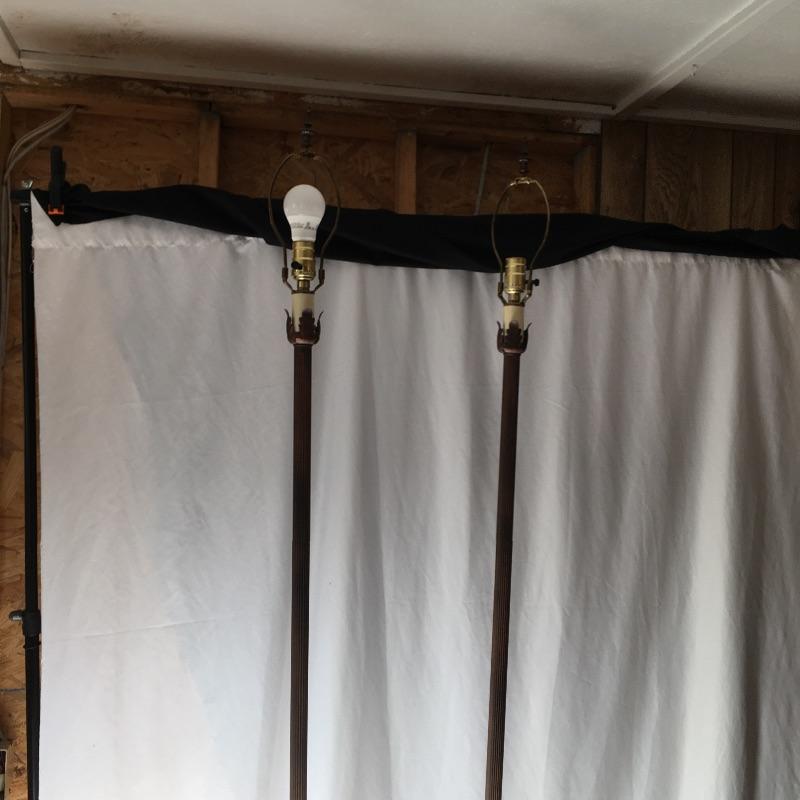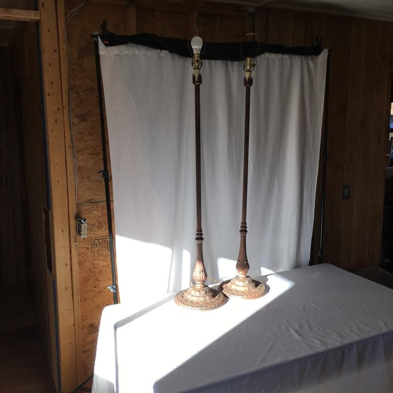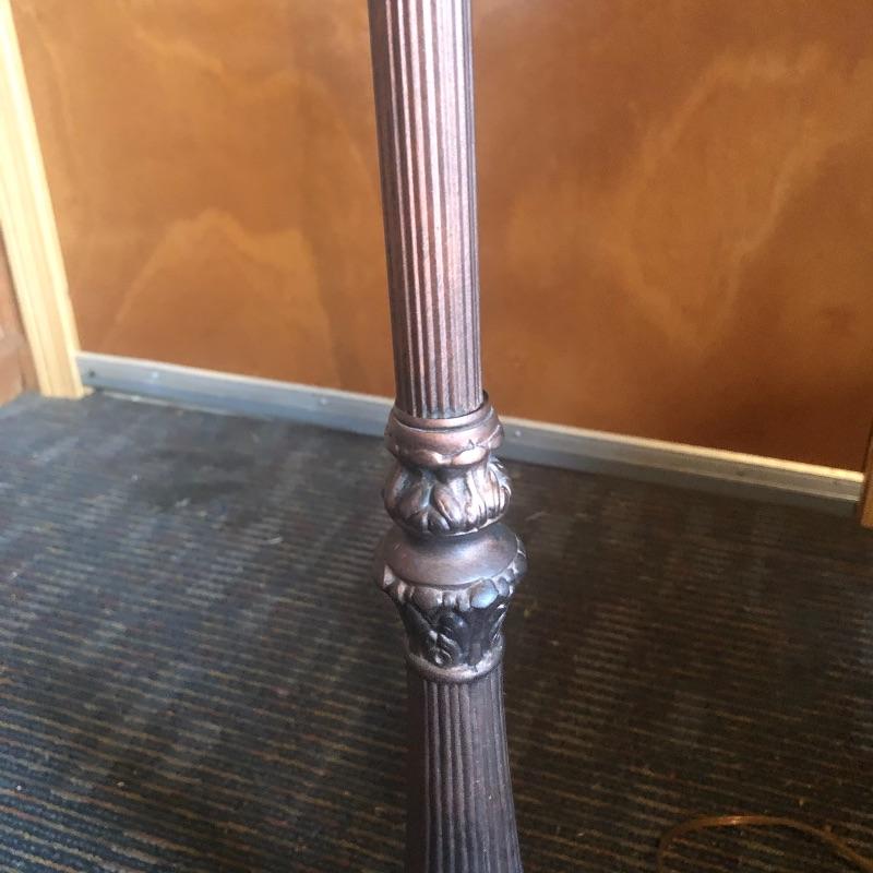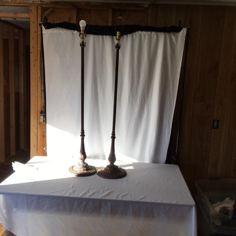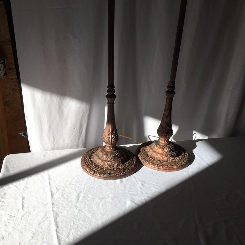 Light up your life with this pair of bronze colored floor lamps. Will look great in any room in your home. Lamps worked when tested. Lamps measure 11.5”D x 59”.