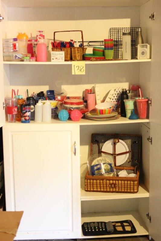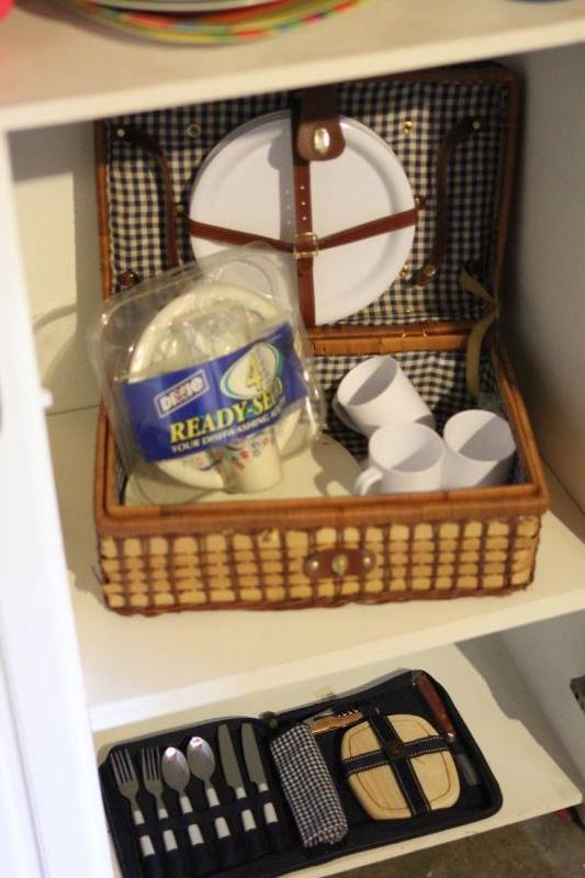 Lot 138 Picnic Basket, Serving Ware, Plastic Items & More