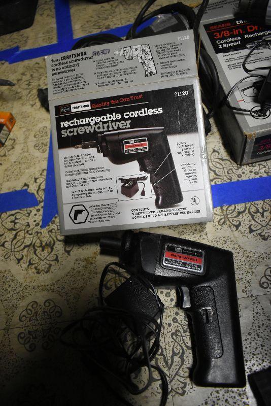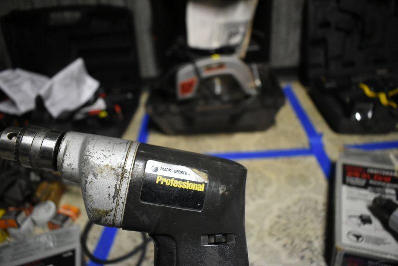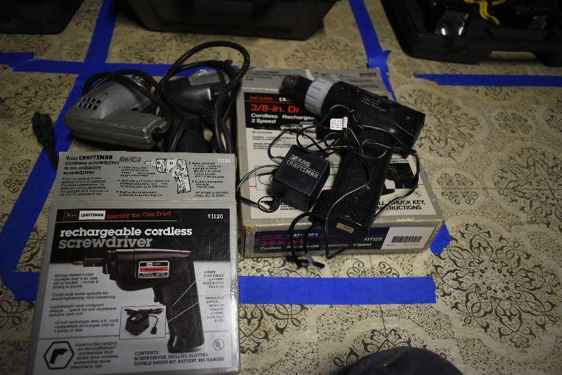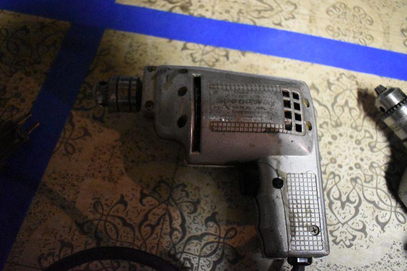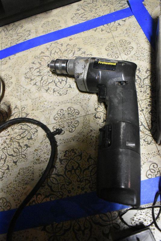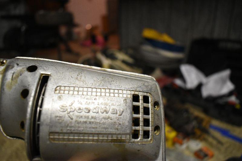 Cordless drill, cordless screwdriver, vintage Speedway drill and a Black and Decker Professional drill. All untested.