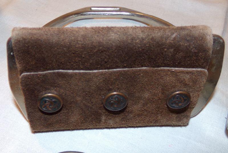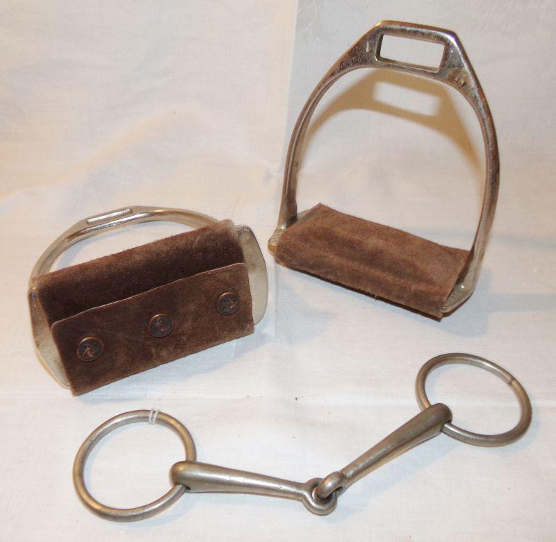 2 STIRRUPS WITH SNAP-ON LEATHER AND A BIT