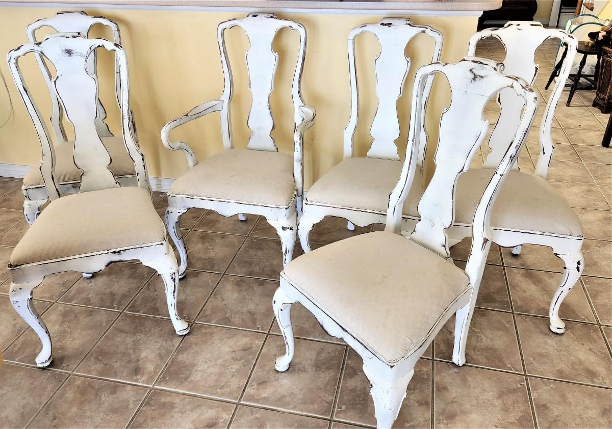 Lot #138 Set of 6 Chalk Painted/Distressed Dining Room Chairs