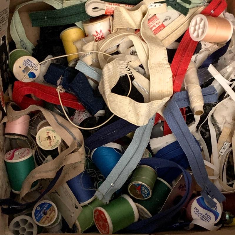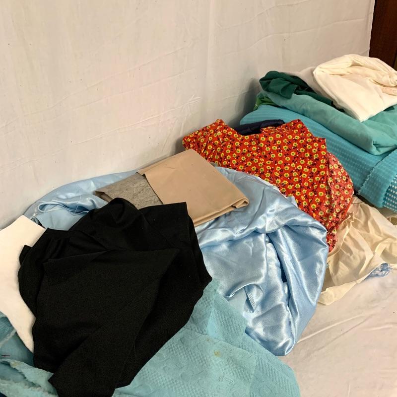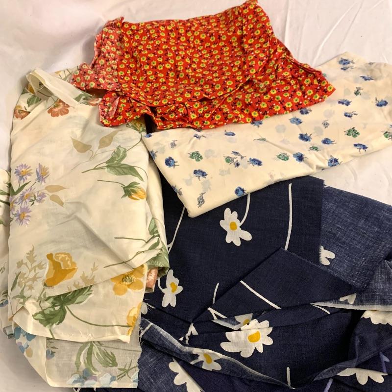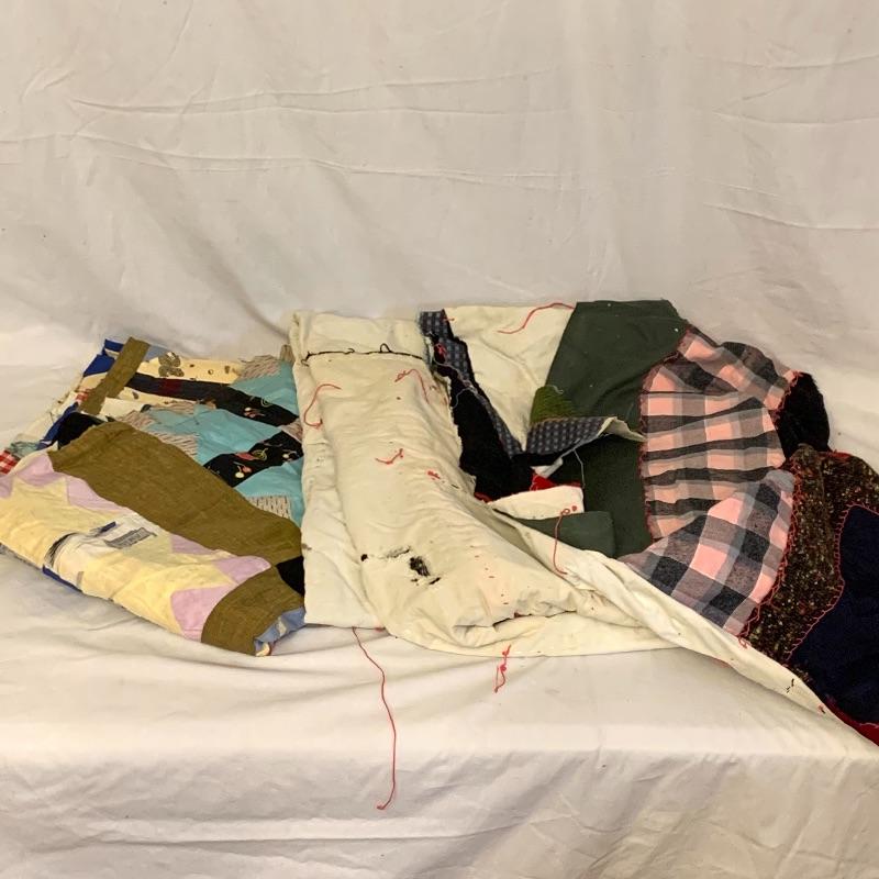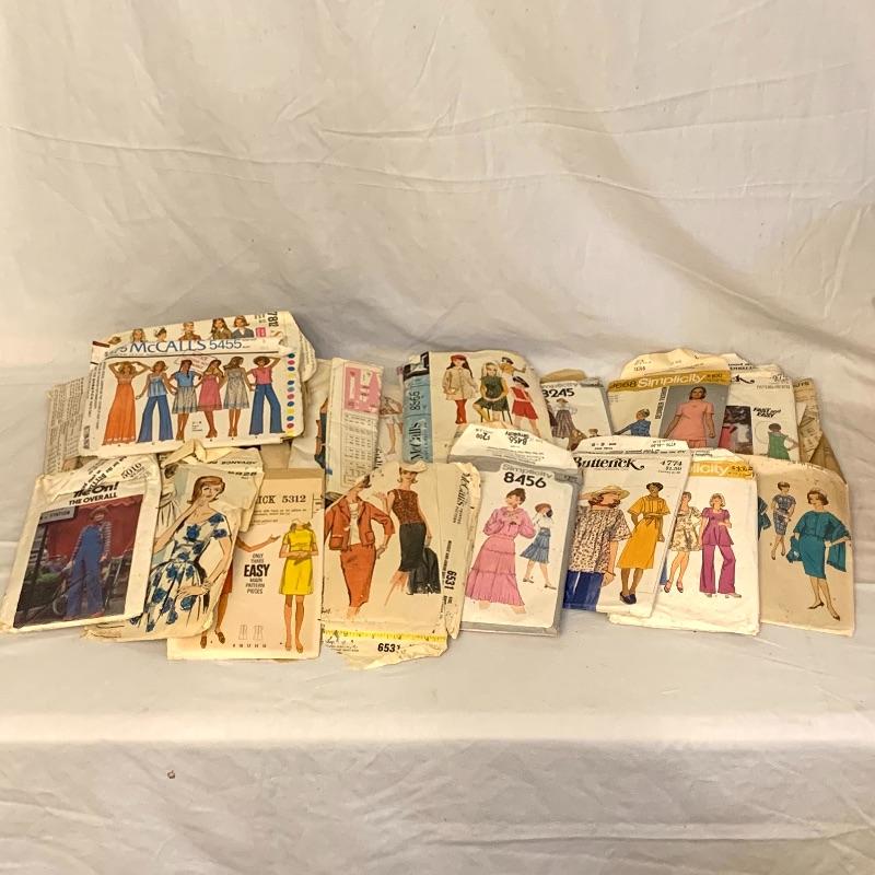 Sew some beautiful vintage style dresses with all the supplies found in this crafty lot! There are many sewing notions and supplies including scissors, thread, buttons, elastic, zippers, a tomato pin cushion, and more. There are also many patterns (Butterick, Simplicity, McCalls, etc.) for women’s clothing (and a few for girls clothing) and a large stack of various fabrics. There are some satiny fabrics, some floral, some plaids, some solids, and much more. There are also two unfinished quilts that you could finish or cut up to use the fabric for your own quilt. Local pickup only.