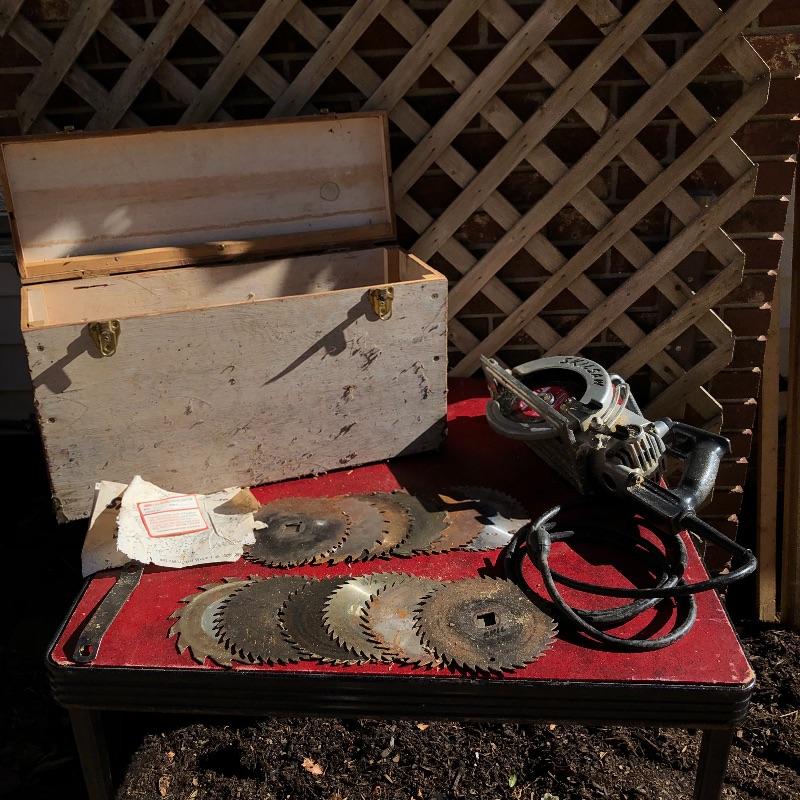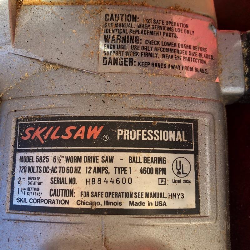 This lot contains a Skillsaw pro, Model 5825. It comes with 13 extra 6.5” blades. Some are rusty, and may not be ideal for use. It has been plugged in and tested and runs well. Local pickup only.