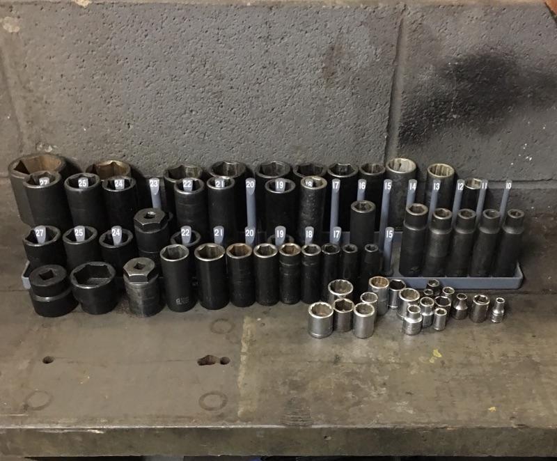 Selection of sockets in a variety of sizes. Most are 1/2 drive with others being 3/8 drive and others 3/4” You can never have too many sockets, don’t miss out on this great selection with names like Matco.