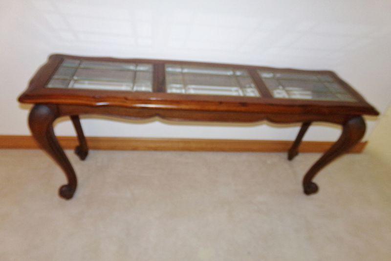 ETHAN ALLEN SOFA TABLE WITH GLASS PANEL TOP