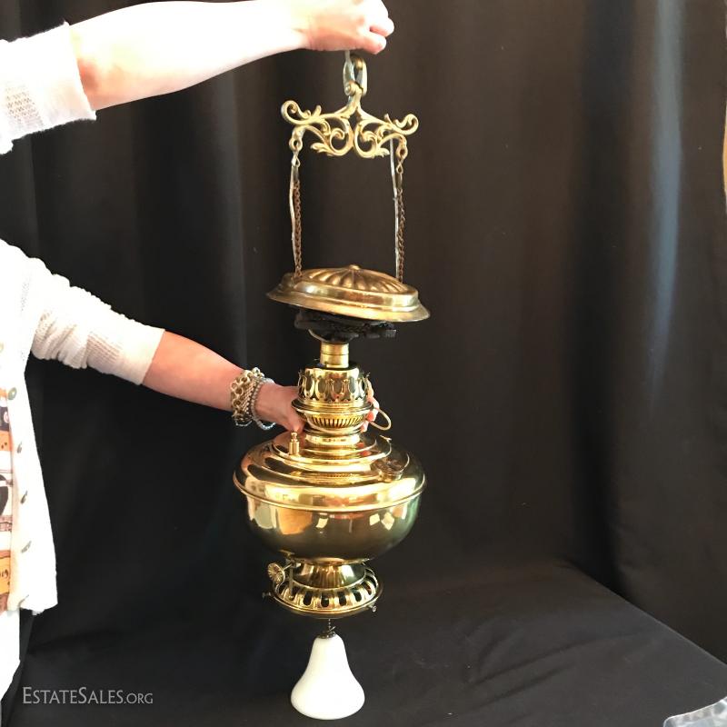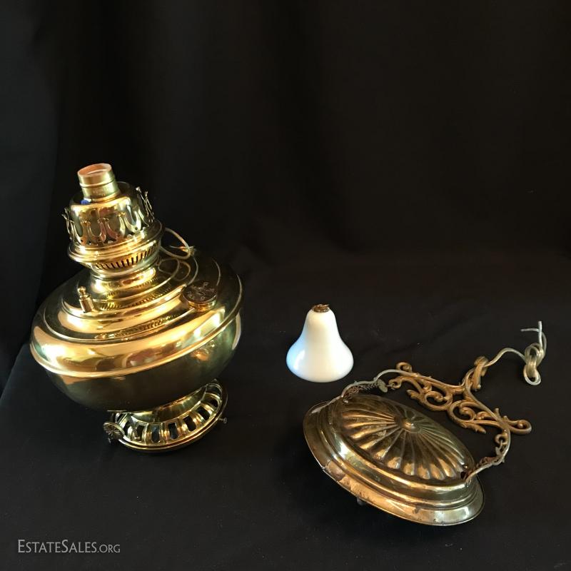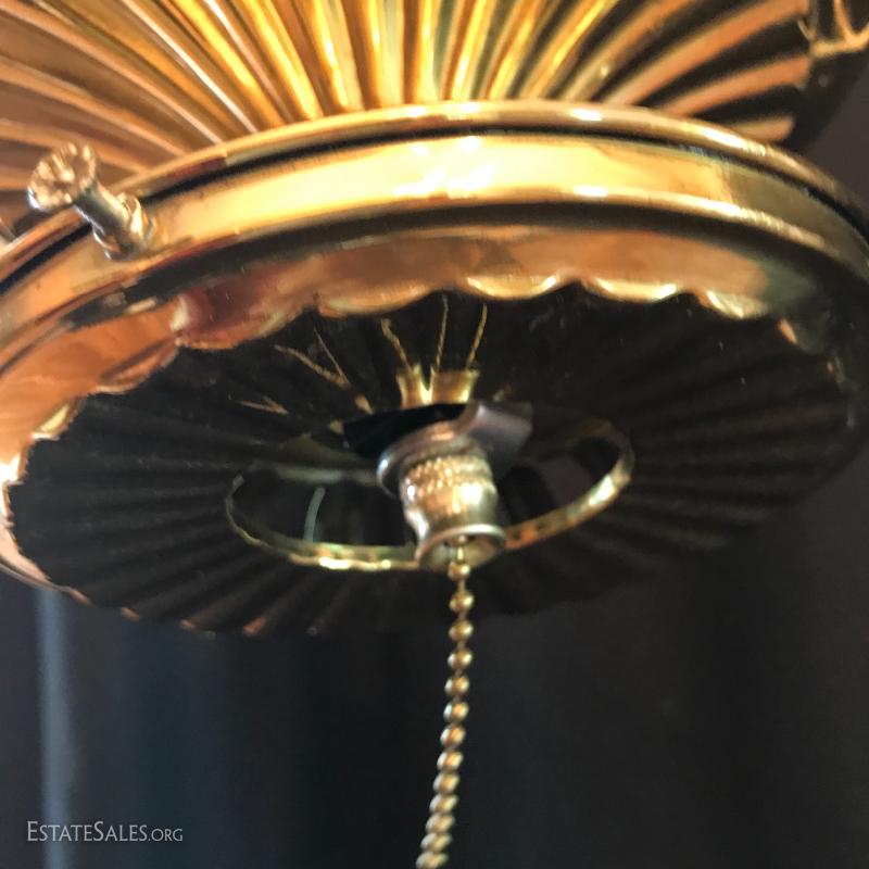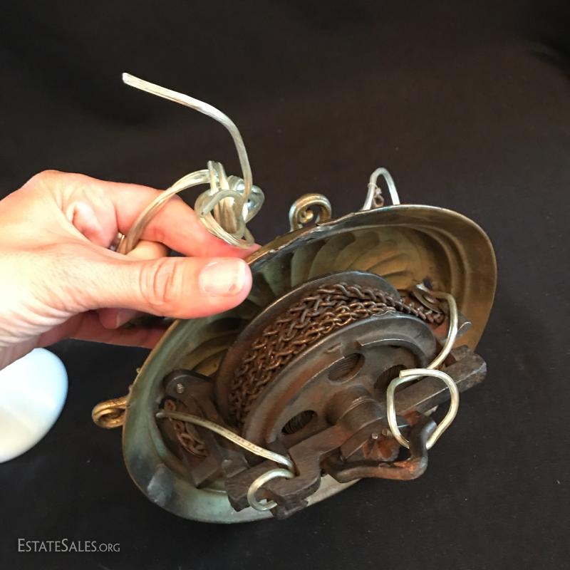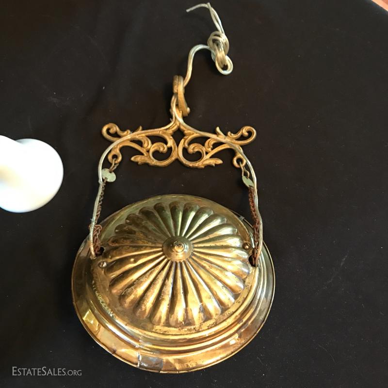 Store lamp electrified with ceiling hanger and milk glass smoke bell. Item available for shipping or pick up in Hendersonville, NC