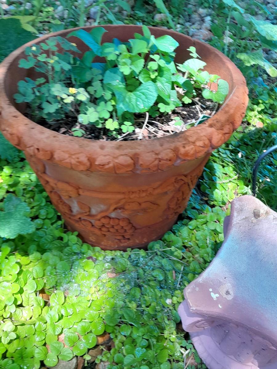 LOT 138 TWO FLOWER POTS AND A SMALL BIRD BATH