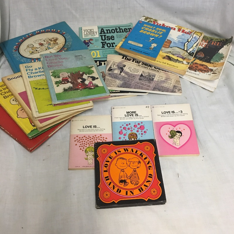 Good grief, this is a cool collection of vintage books. Iconic childhood favorite Charlie Brown, Caicos The Far Side, Love Is, Calvin and Hobbes and more. Keep yourself and kids entertained for hours with this lovely selection of vintage books.