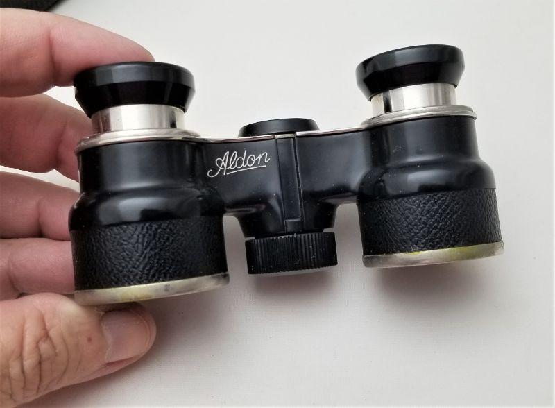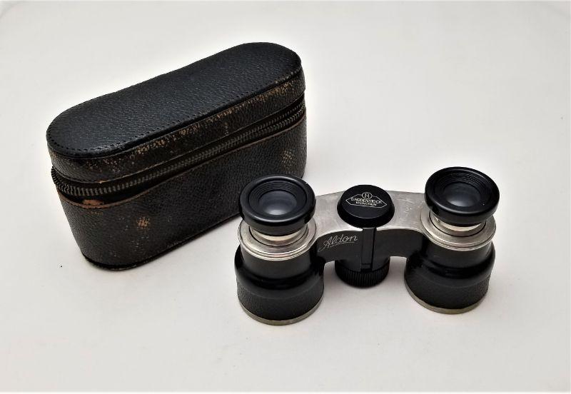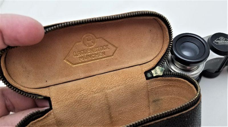 Nice pair of opera glasses - made by G. Rodenstock in Munich, Germany - "Aldon" model. Leather zippered case. Glasses are adjustable and they work fine. Measures 4" long, 2" tall.