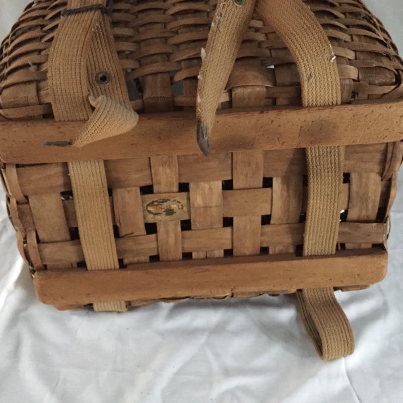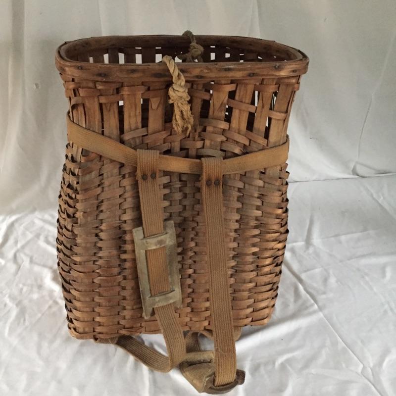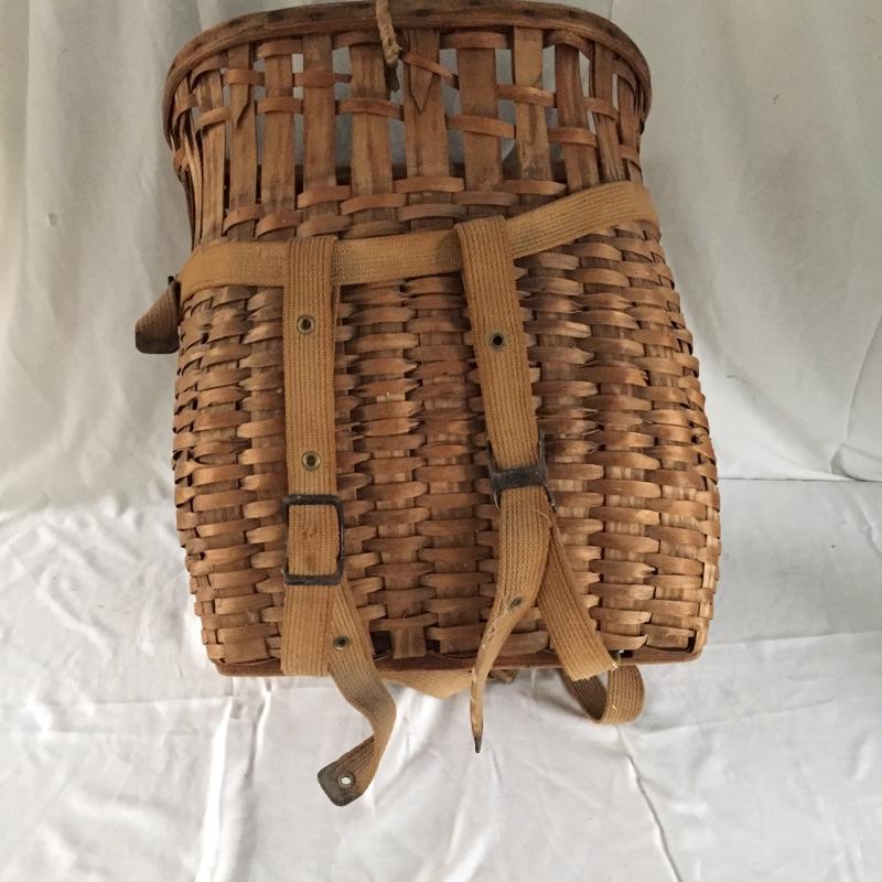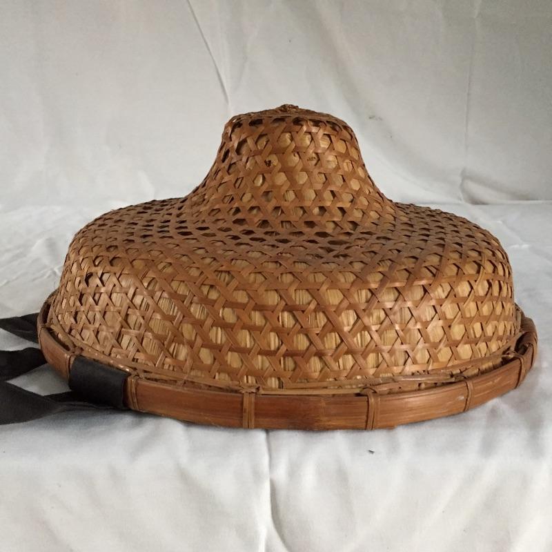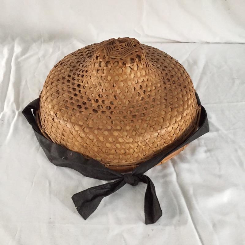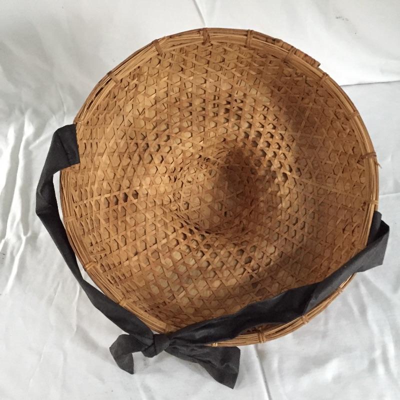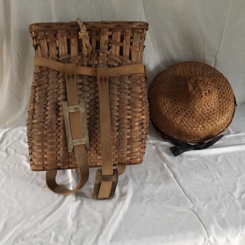 Enchanting woven backpack and a Coolie hat. Lovely decor from foreign lands. Backpack measures 16” x 11” x 18.