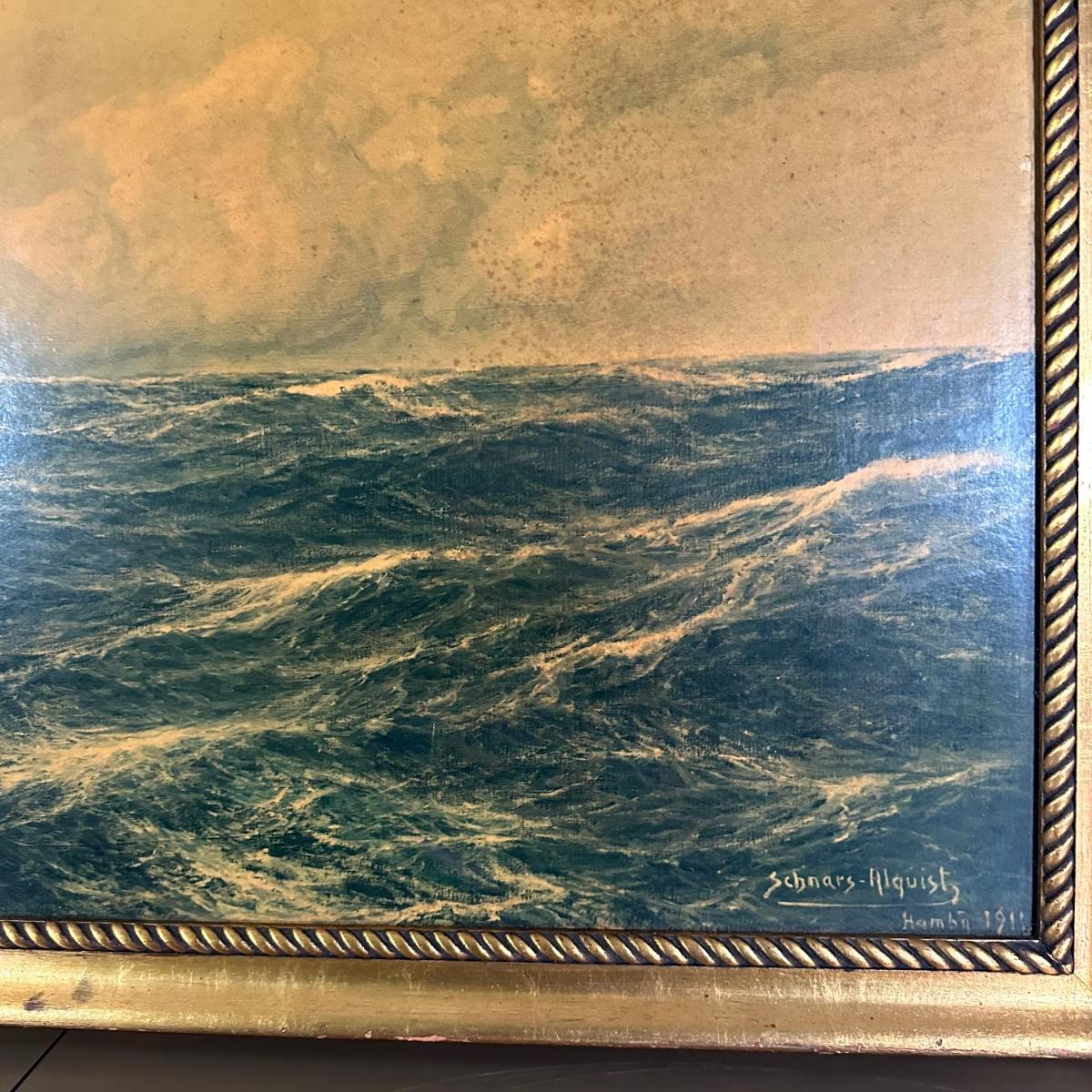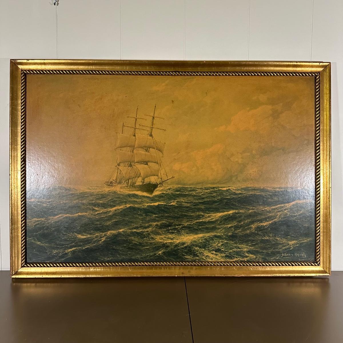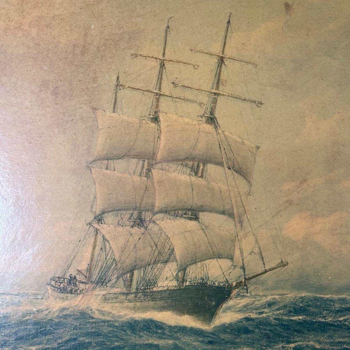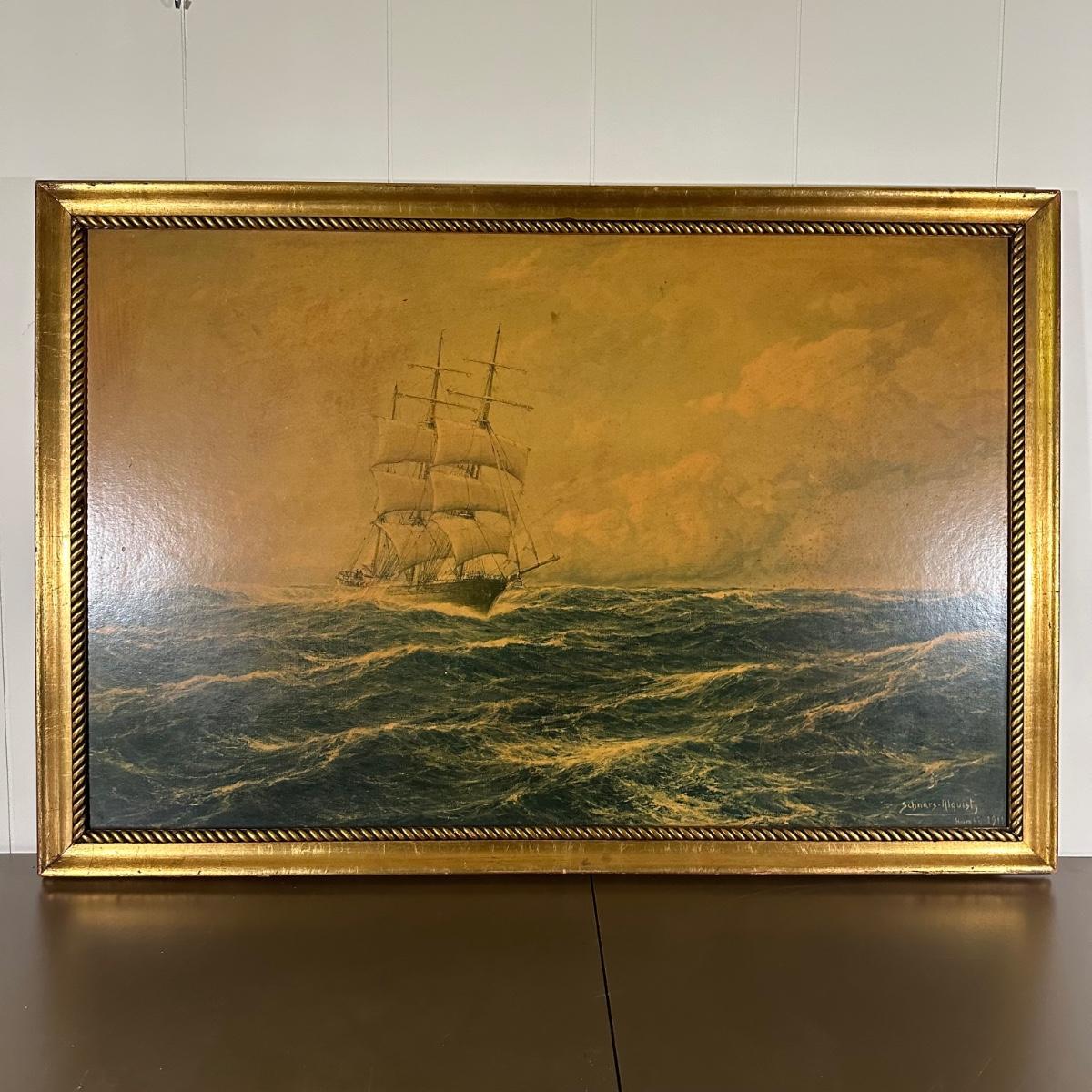 LOT 138B: Vintage Large Schnars-Alquist Ship print, framed.