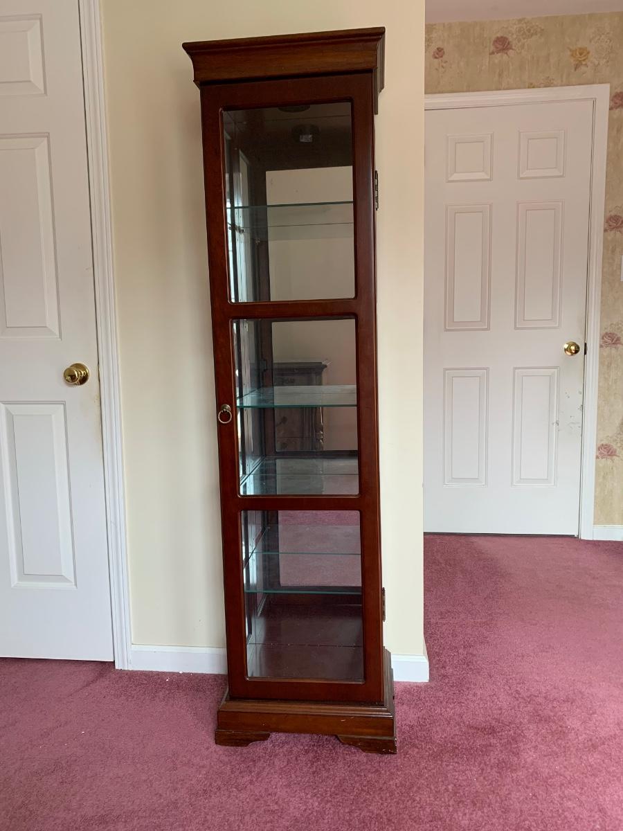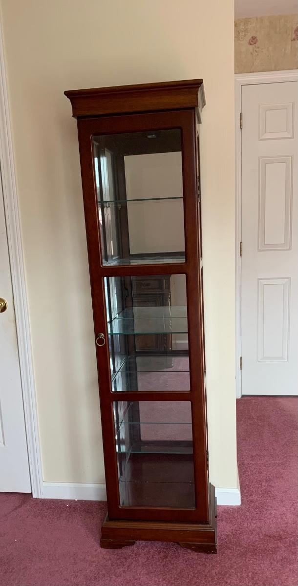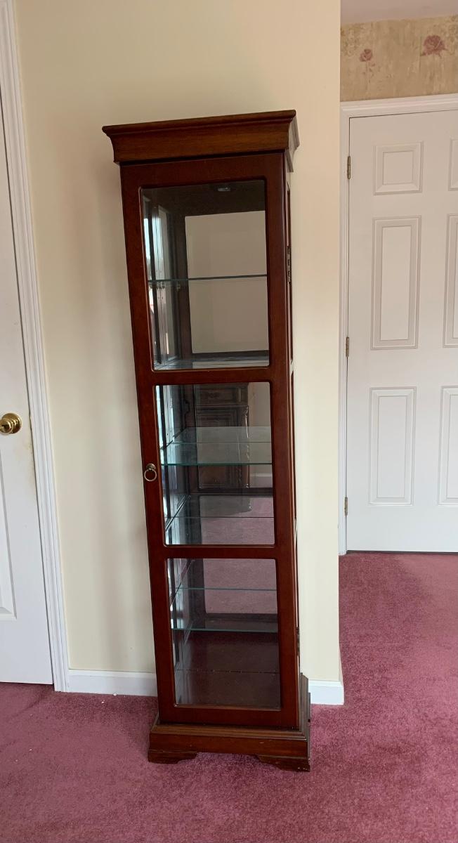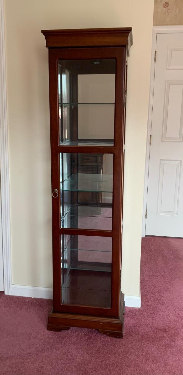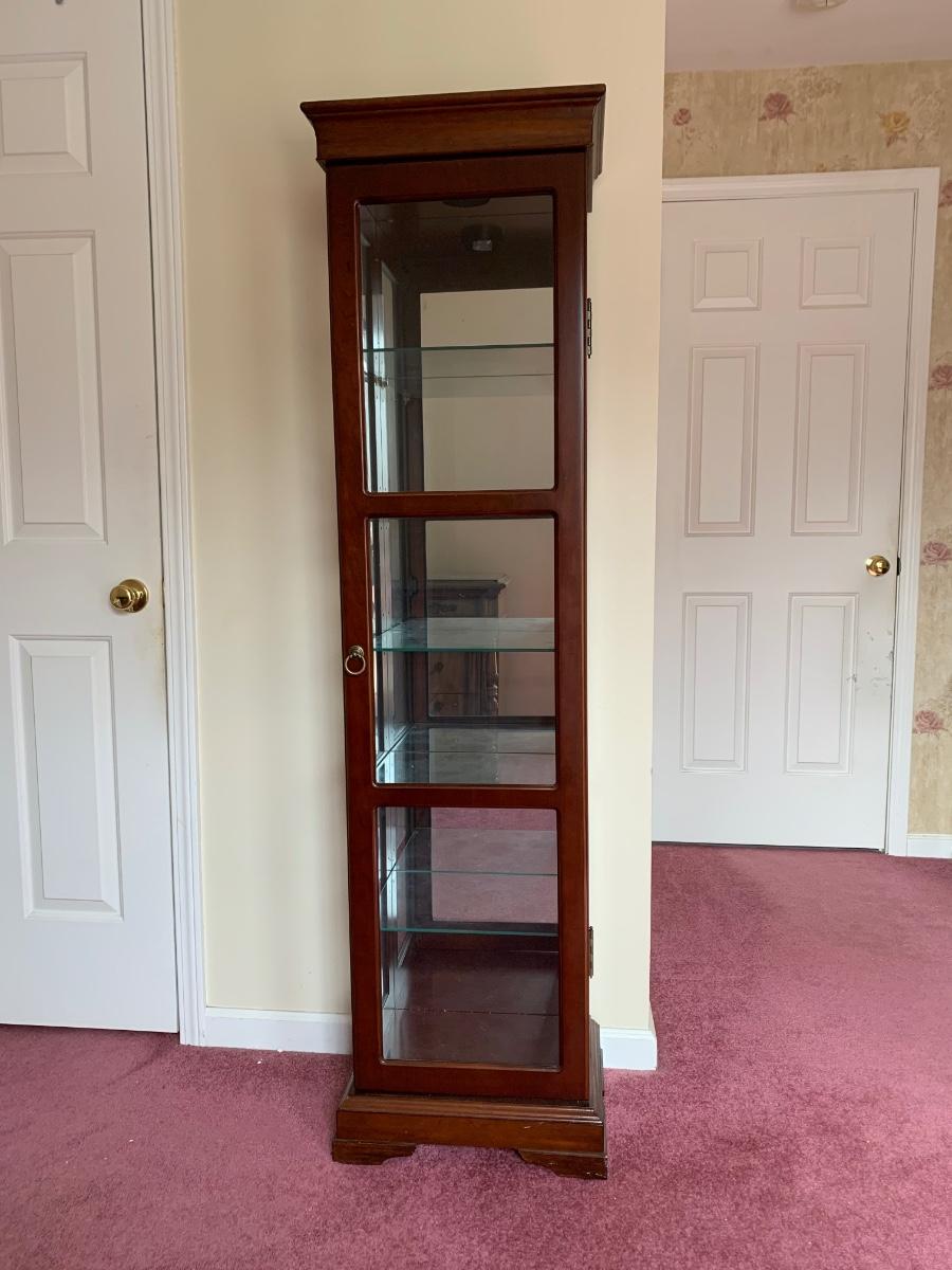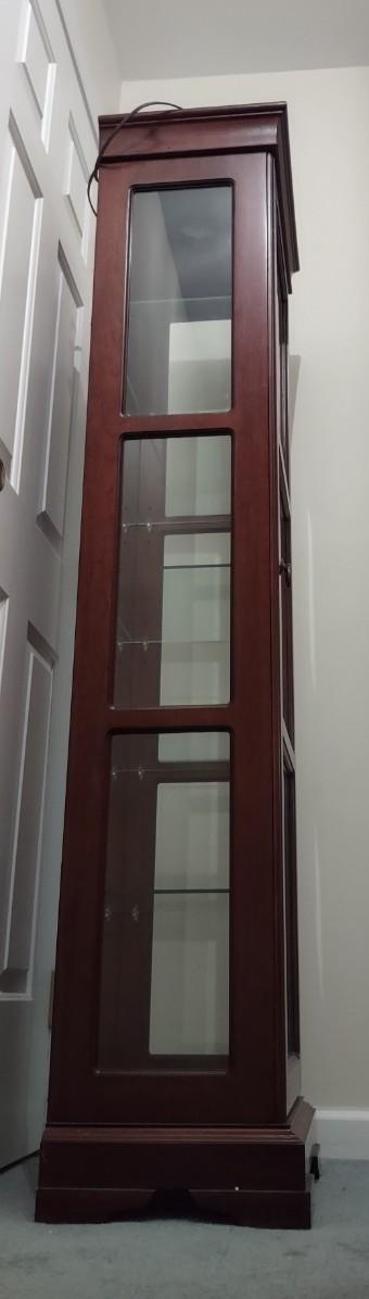 Square Curio Cabinet w/ light and adjustable glass shelves (18×13×66)- untested