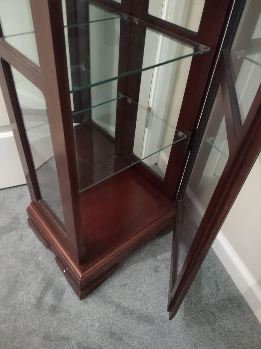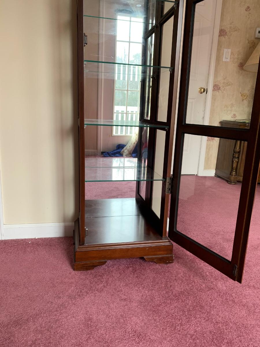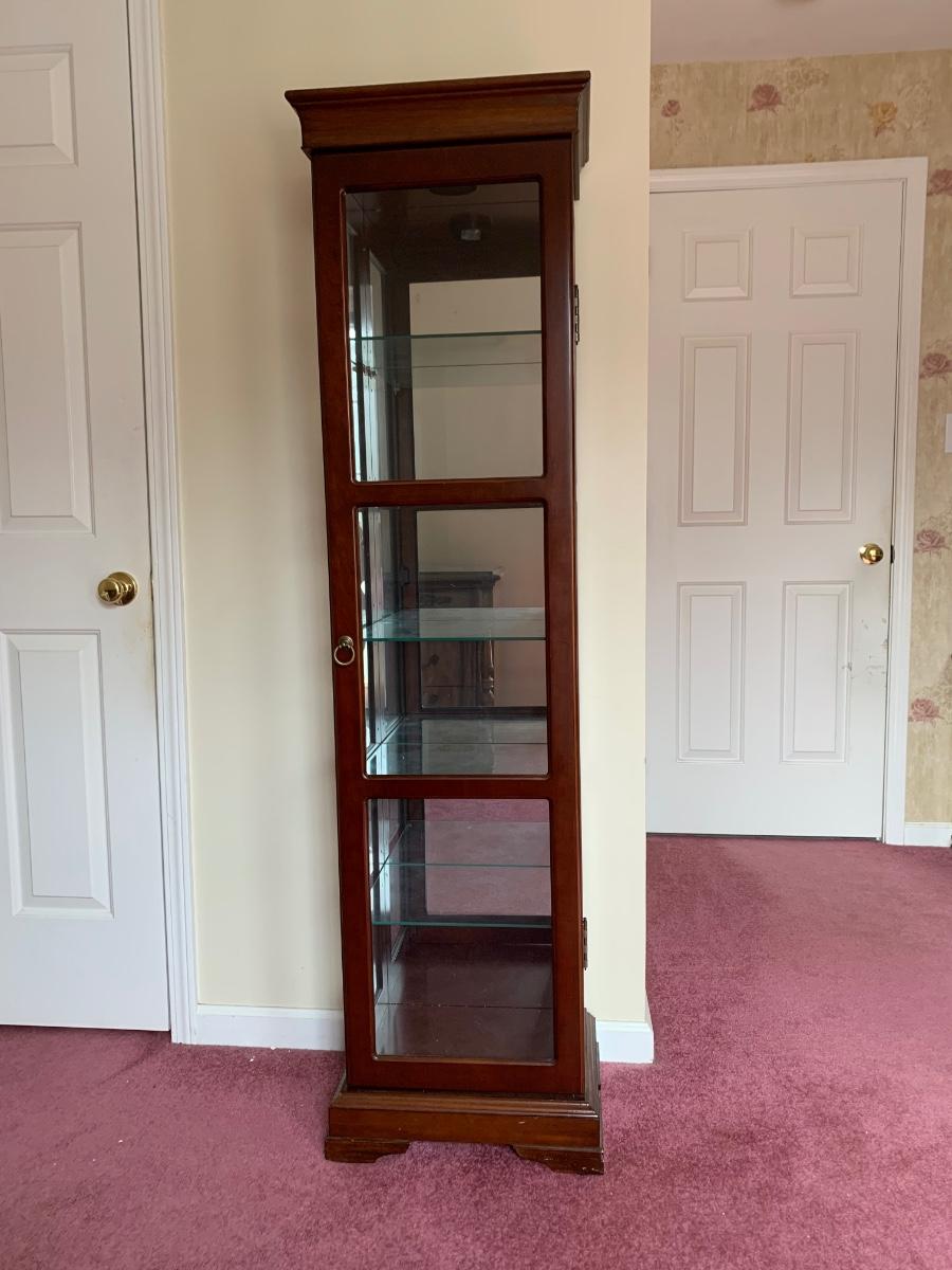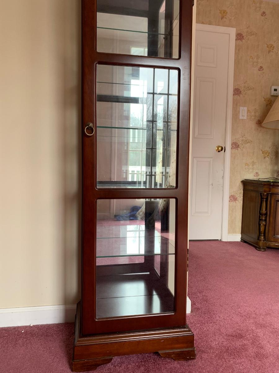Square Curio Cabinet w/ light and adjustable glass shelves (18×13×66)- untested