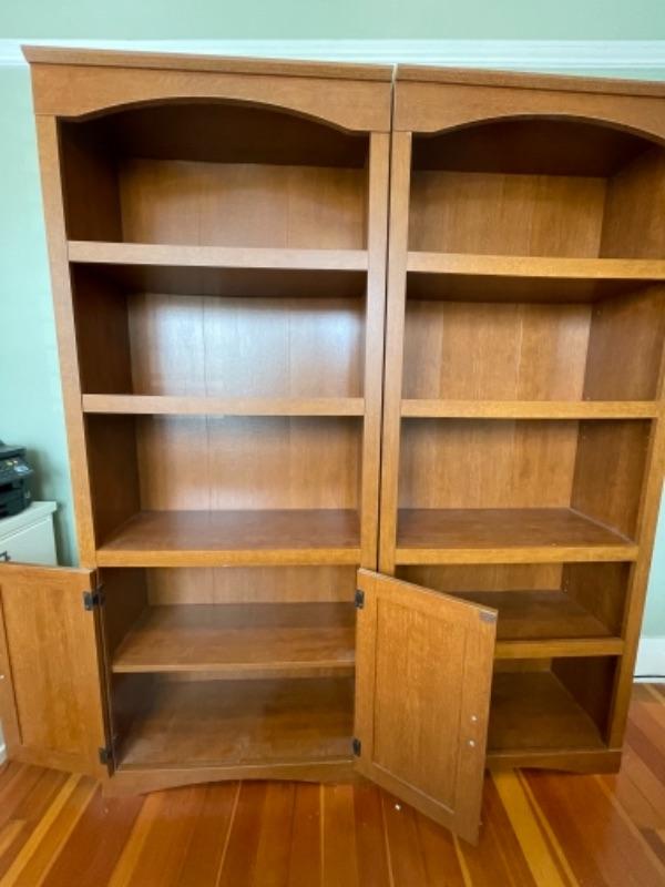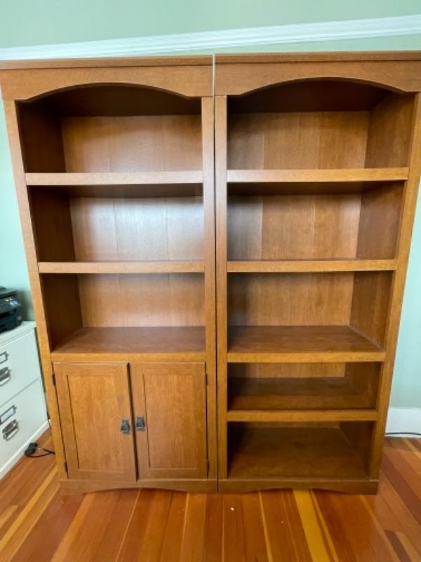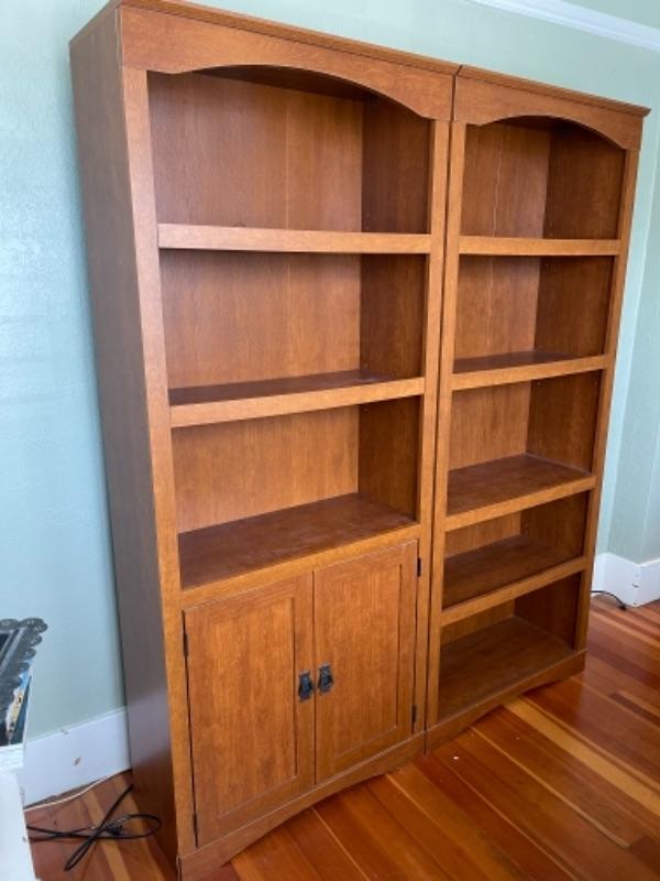 Lot 138OF. Pair of teakwood bookcases (30”W x 12”D x 71”T)--$75