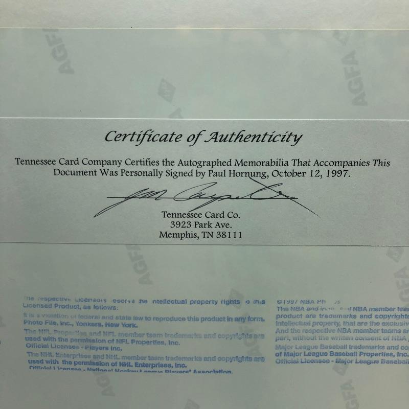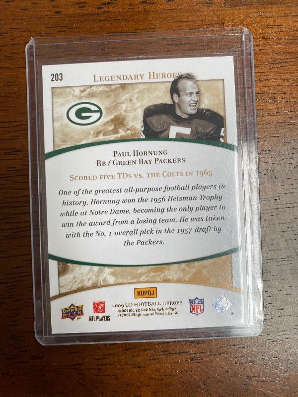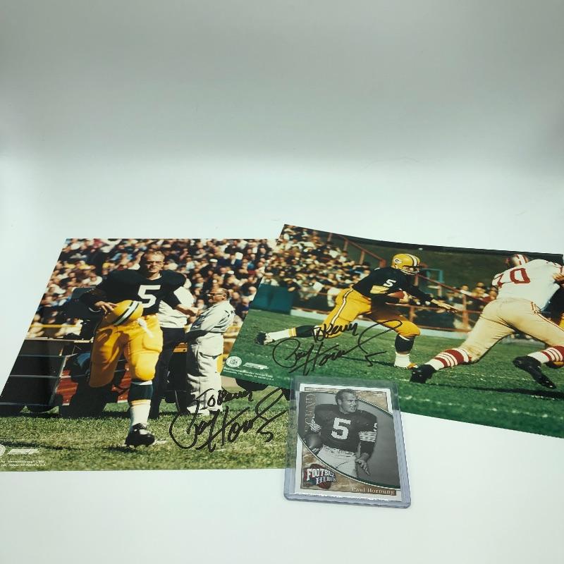 Green Bay Packer Fans! Two Paul Hornung signed photos. Both have COAs. Lot also includes an Upper Deck 2009 card.