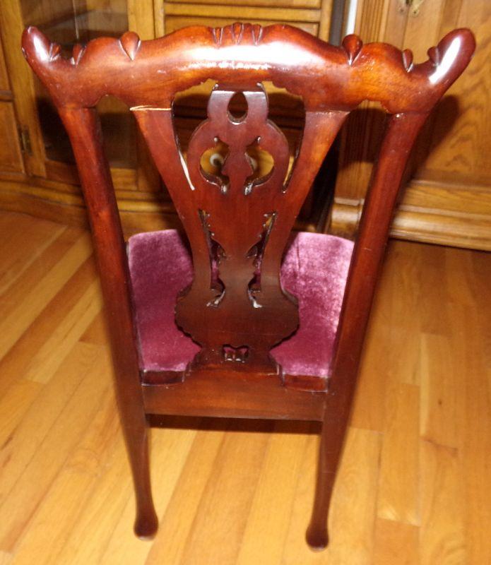 THE DOLL CHAIR HAS A VELVET COVERED SEAT AND IS ALSO IN VG CONDITION