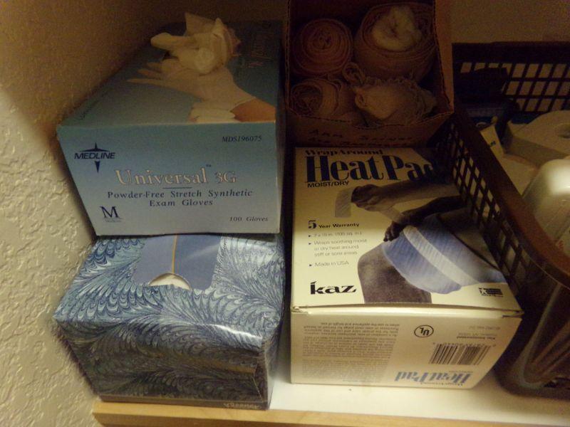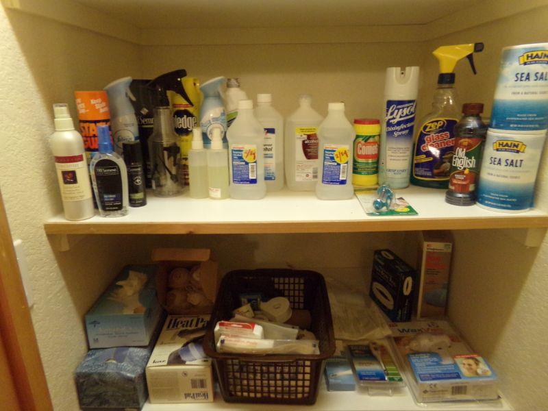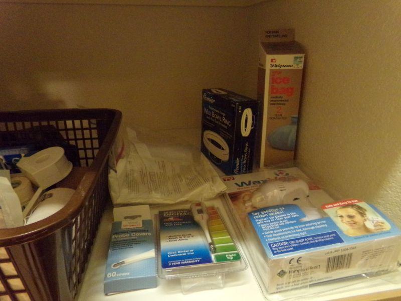 TOILETRIES, FIRST AIDE, HEAT PAD, LATEX GLOVES, CLEANING SUPPLIES & MORE