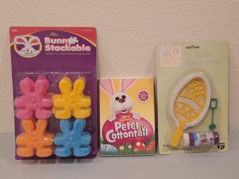 Lot 139: New 'Here Comes Peter Cottontail' DVD, Bubbles and a Bunny Stacking Game