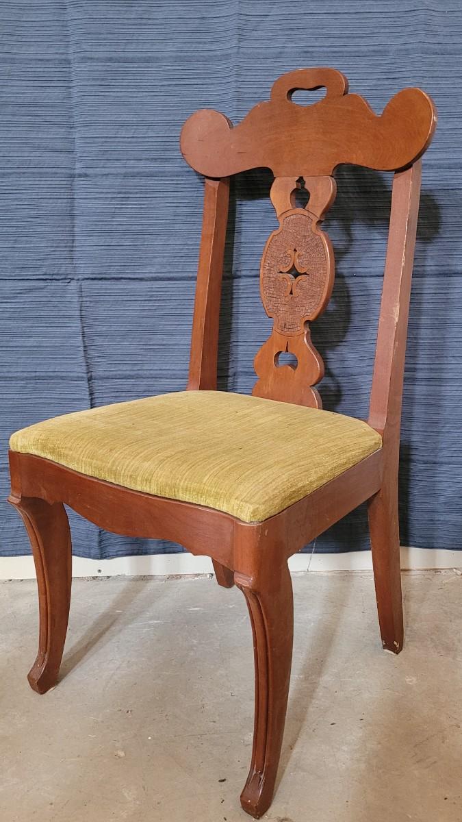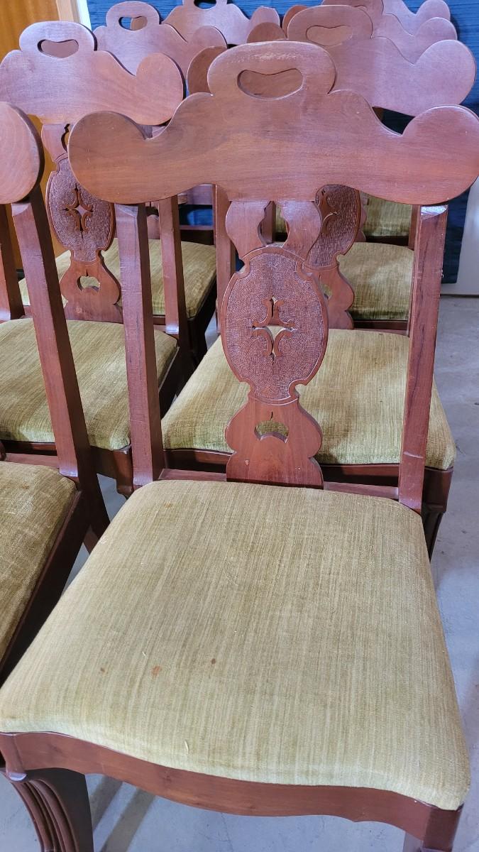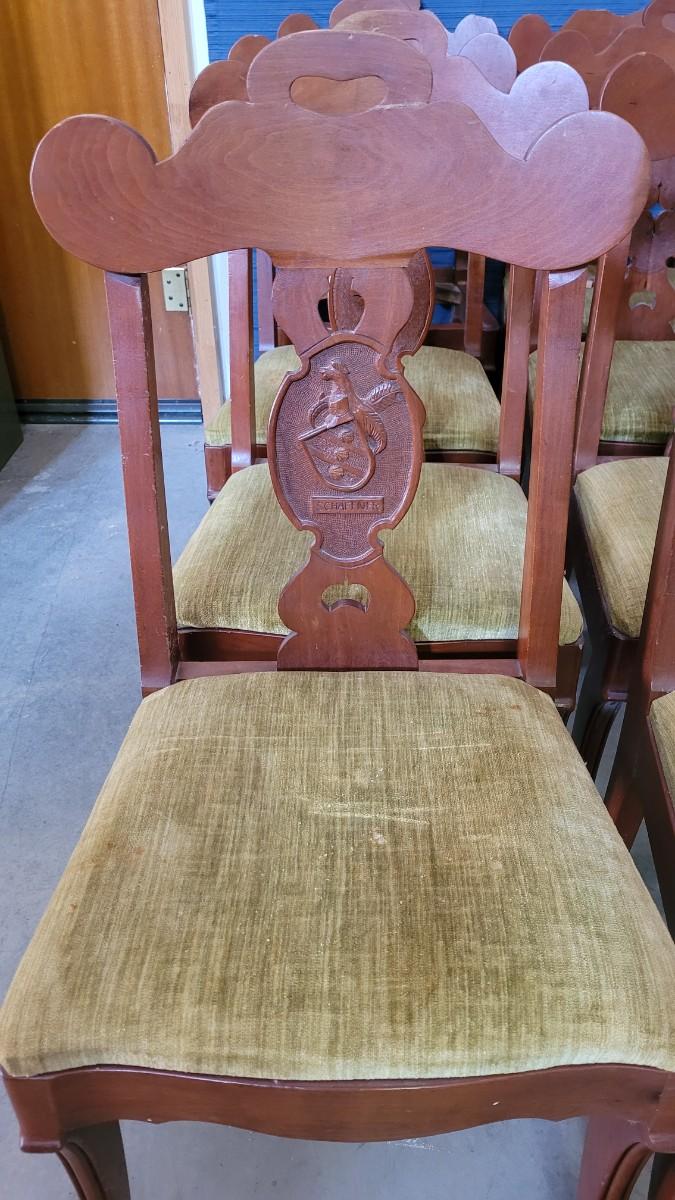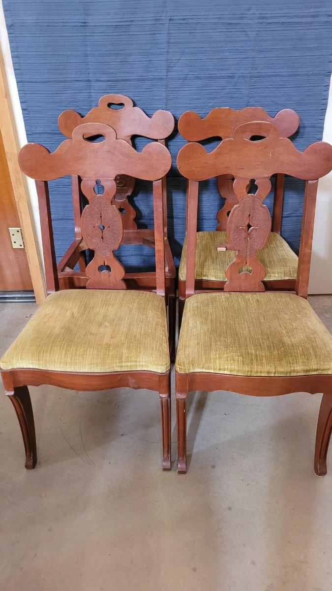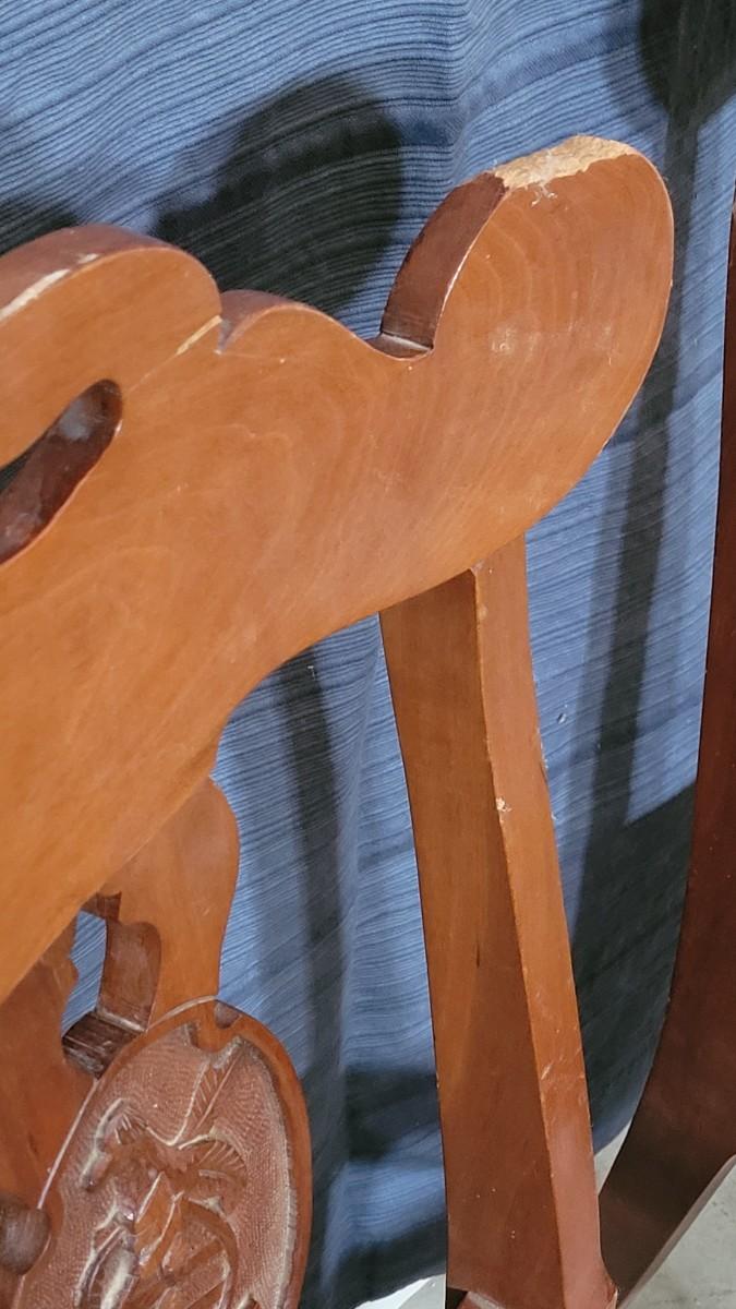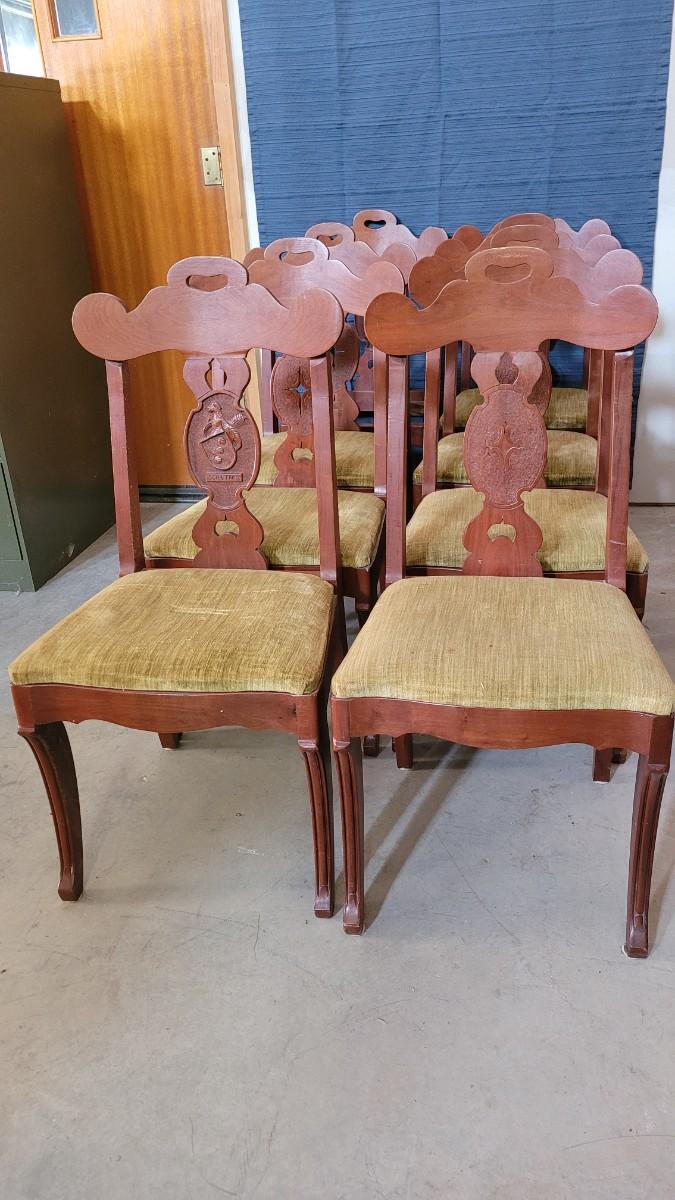 ****1 chair has broken top piece but the piece comes with the chair to be repaired & the Monogrammed Chair's seat Cushion has been located!****