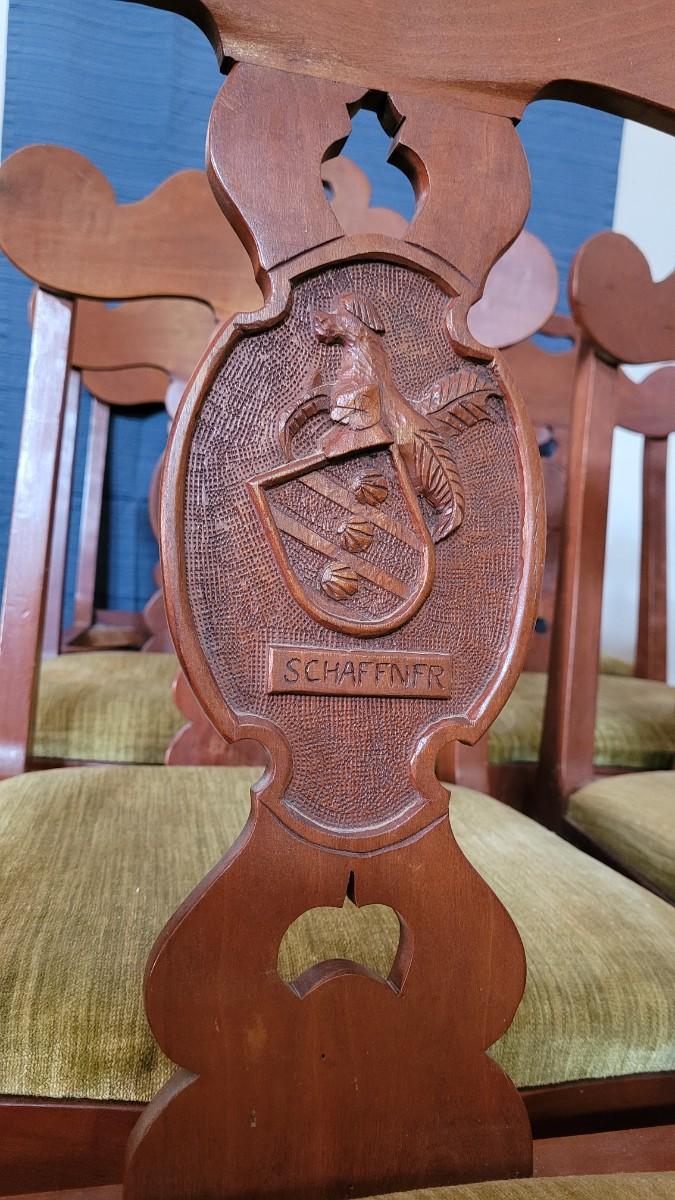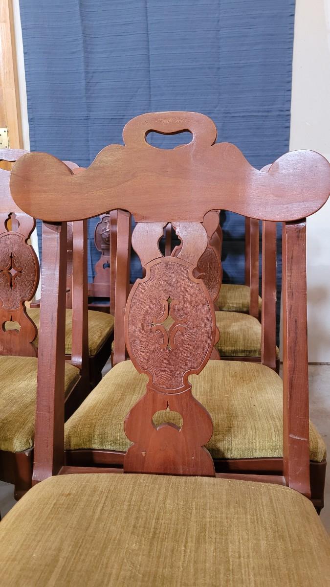 Lot 139: (8) Antique Custom Stipled Center Fiddleback Dining Chairs (2 are Monogrammed with "Schaffner" and a Crest)