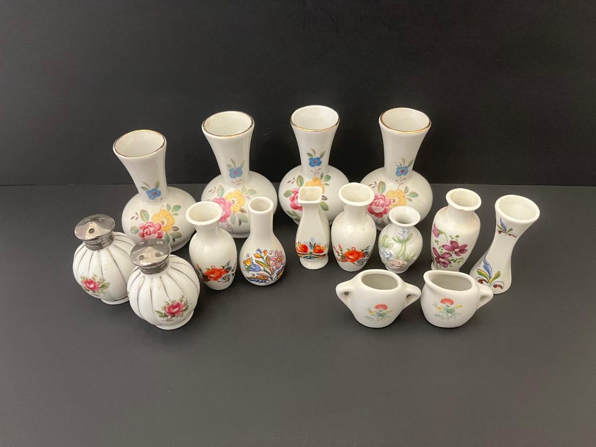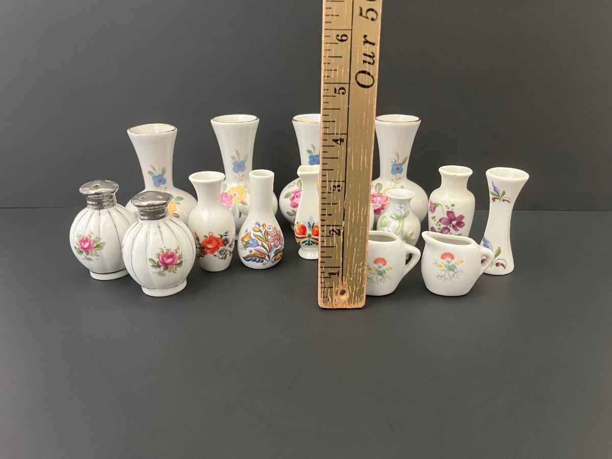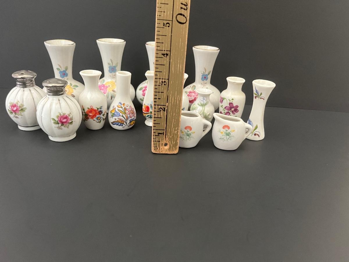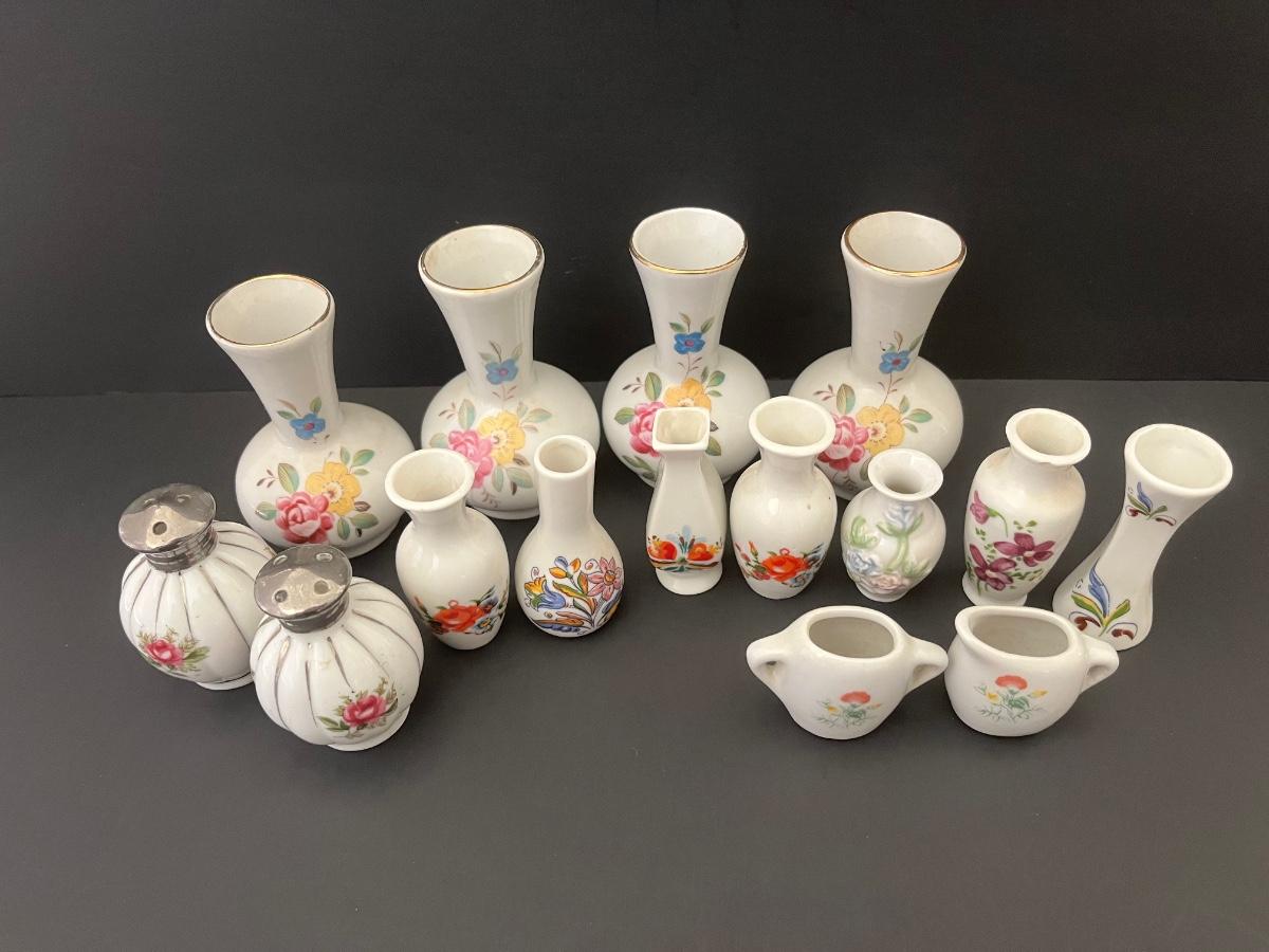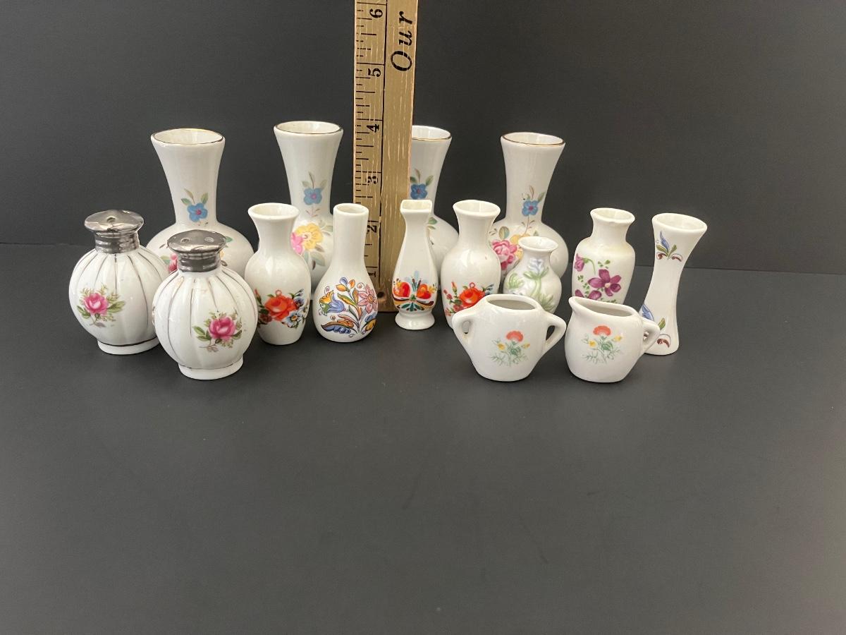 Lot 139: Vintage Floral Salt & Pepper Shakers & Decorative Miniature China Vases