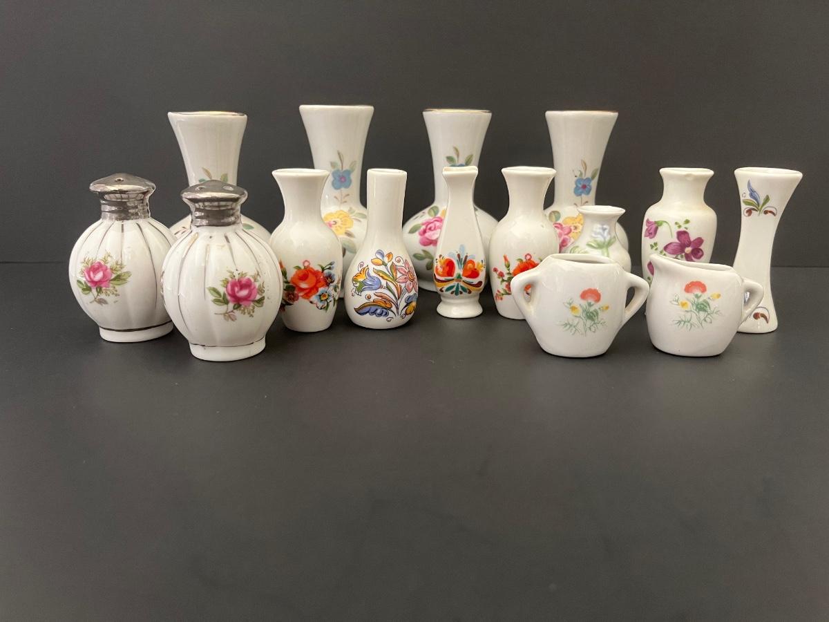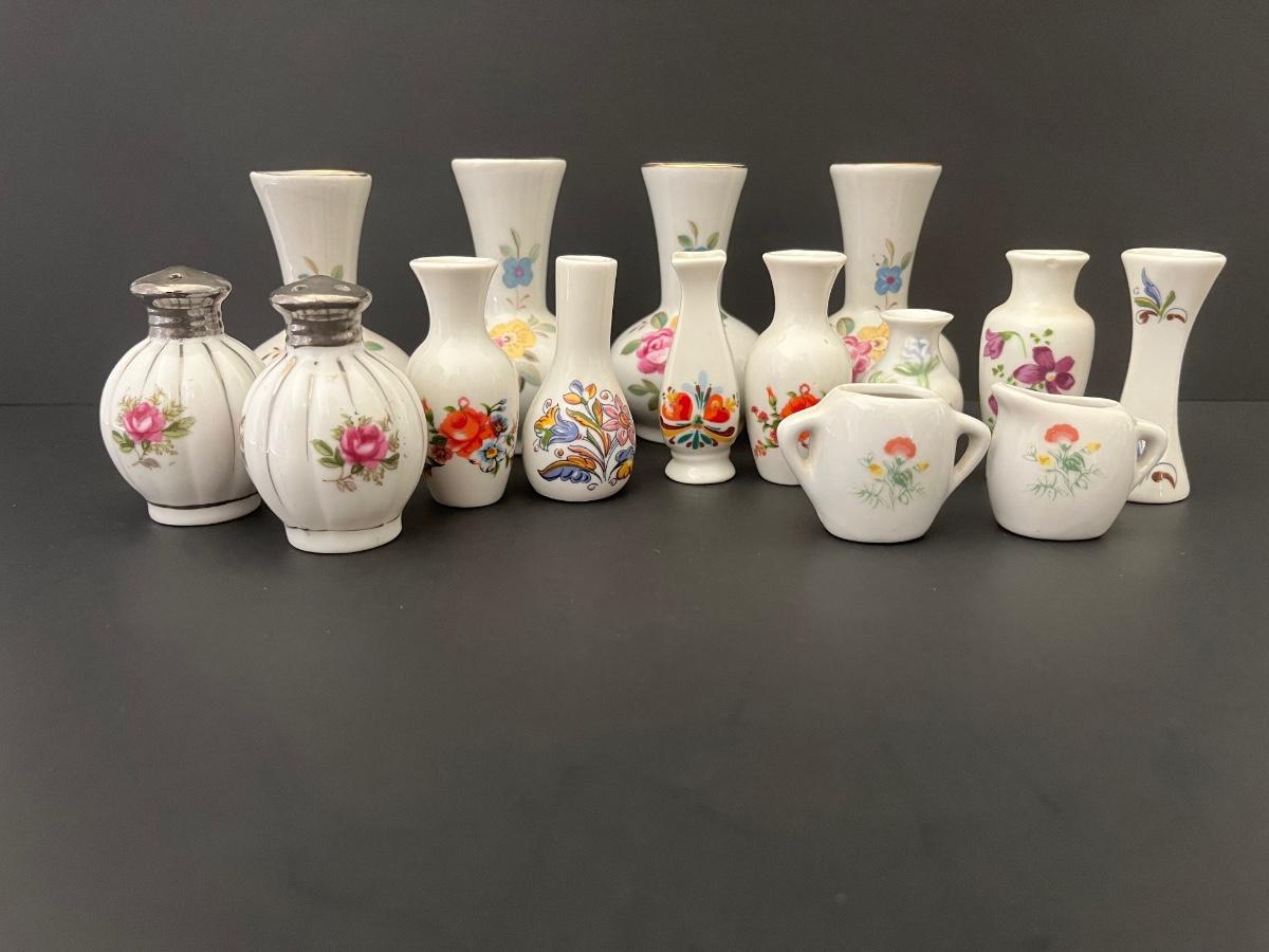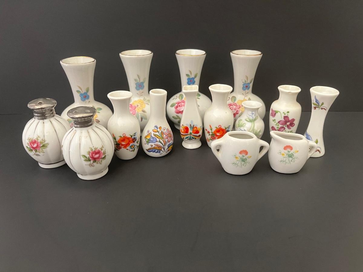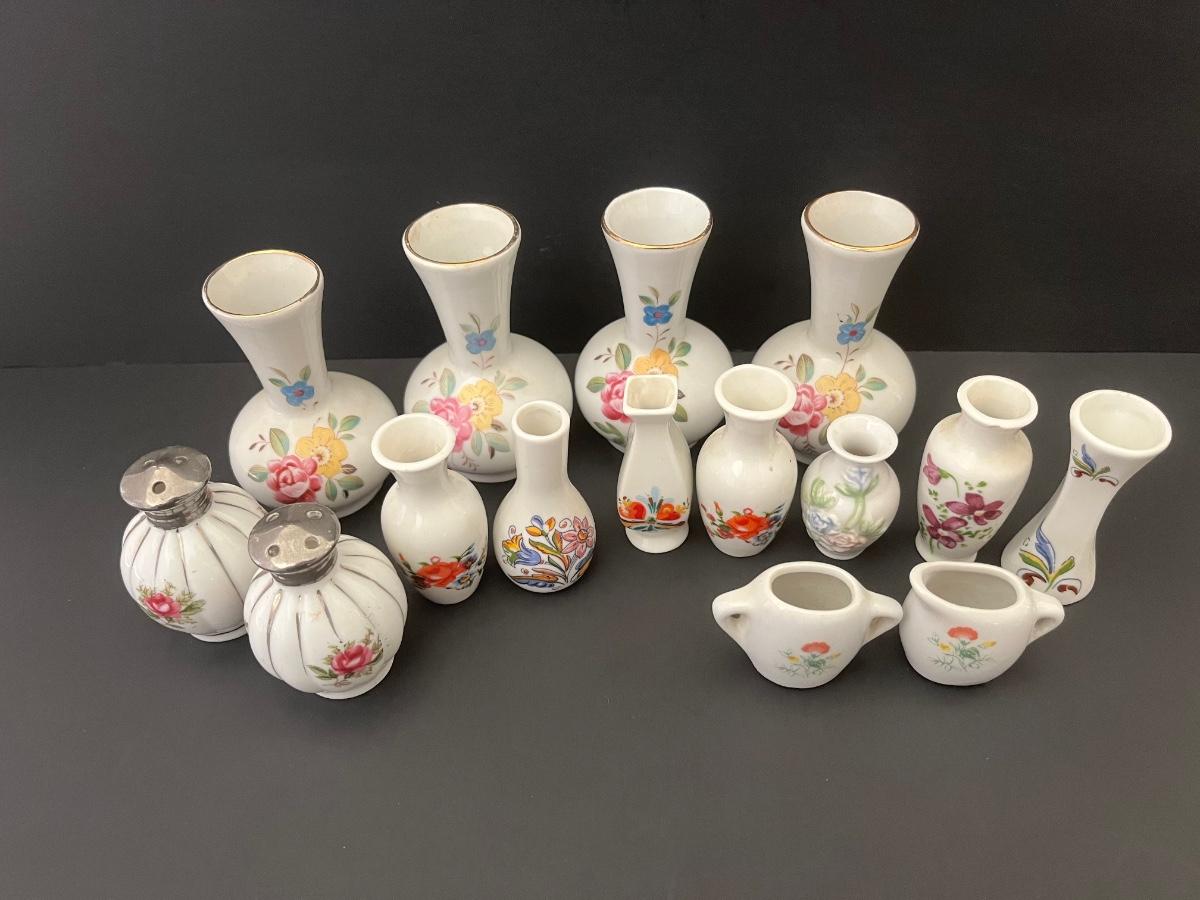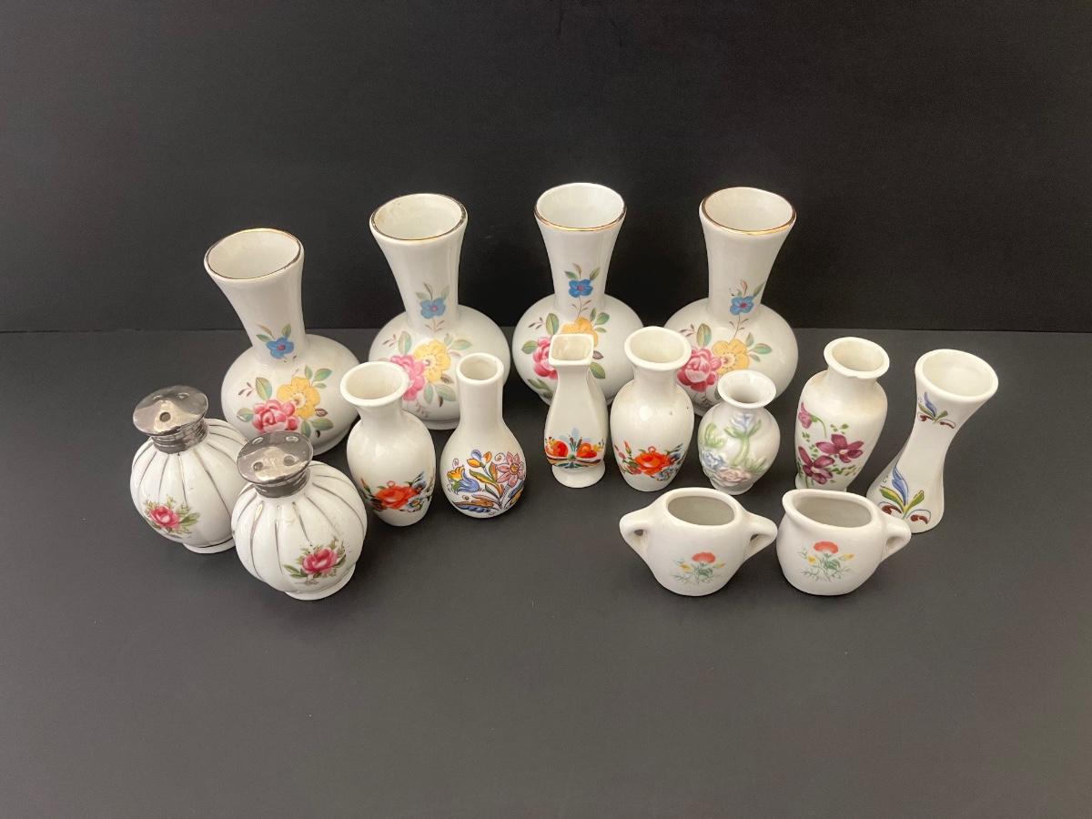 Lot 139: Vintage Floral Salt & Pepper Shakers & Decorative Miniature China Vases