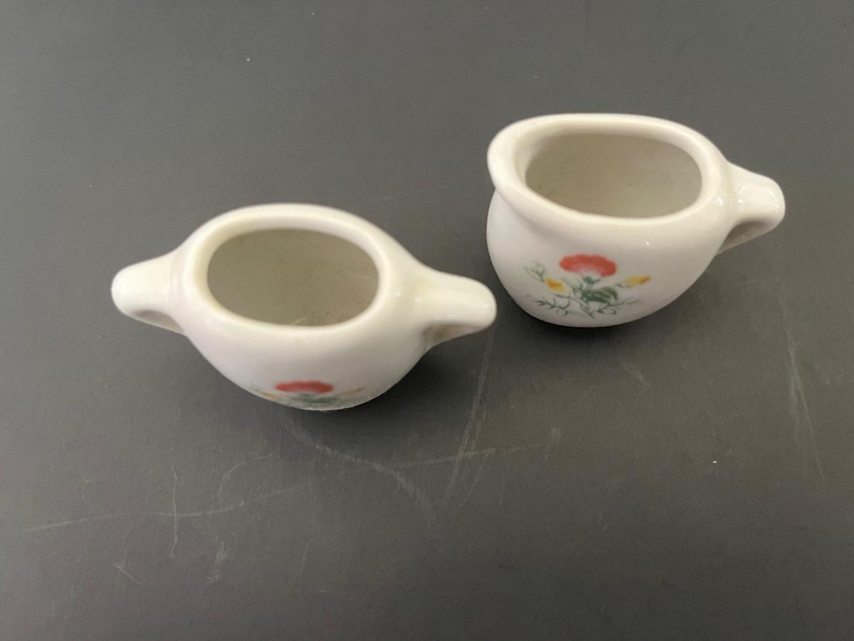 Miniature china vases and floral set of salt & pepper.